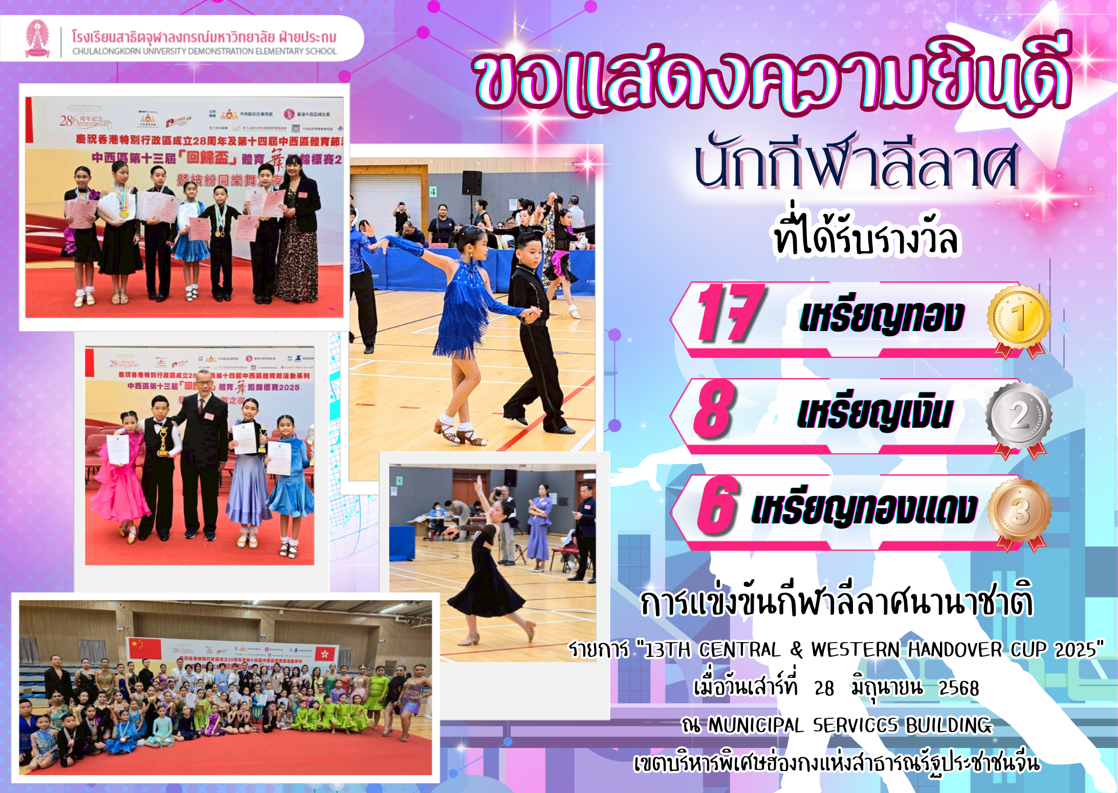 ขอแสดงความยินดีกับทีมกีฬาลีลาศของโรงเรียน ที่ได้รับรางวัล 17 เหรียญทอง 8 เหรียญเงิน 6 เหรียญทองแดง จากการแข่งขันลีลาศนานาชาติในนามประเทศไทย รายการ “13th Central & Western Handover Cup 2025” ณ Municipal Serviccs Building ณ เขตบริหารพิเศษฮ่องกงแห่งสาธารณรัฐประชาชนจีนWeb Master2025-09-30T09:20:13+07:00September 30, 2025|