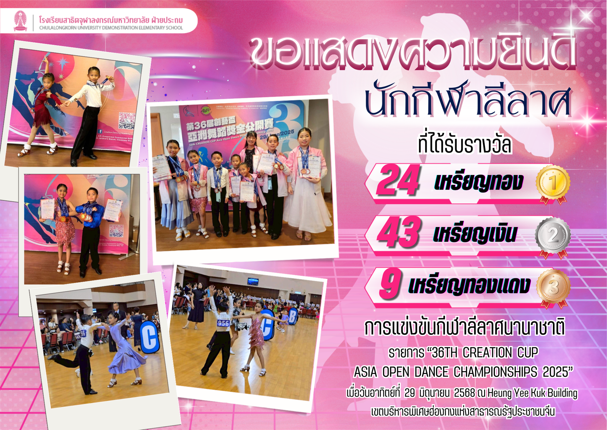 ขอแสดงความยินดีกับทีมกีฬาลีลาศของโรงเรียน ได้รับรางวัล 24 เหรียญทอง 43 เหรียญเงิน 9 เหรียญทองแดง จากการแข่งขันลีลาศนานาชาติในนามประเทศไทย รายการ “36th Creation Cup Asia Open Dance Championships 2025” ณ Heung Yee Kuk Building เขตบริหารพิเศษฮ่องกงแห่งสาธารณรัฐประชาชนจีนWeb Master2025-09-30T09:12:21+07:00September 30, 2025|