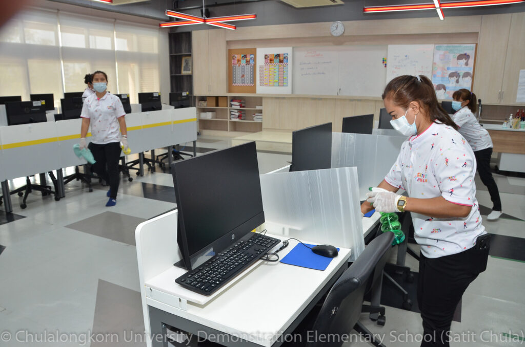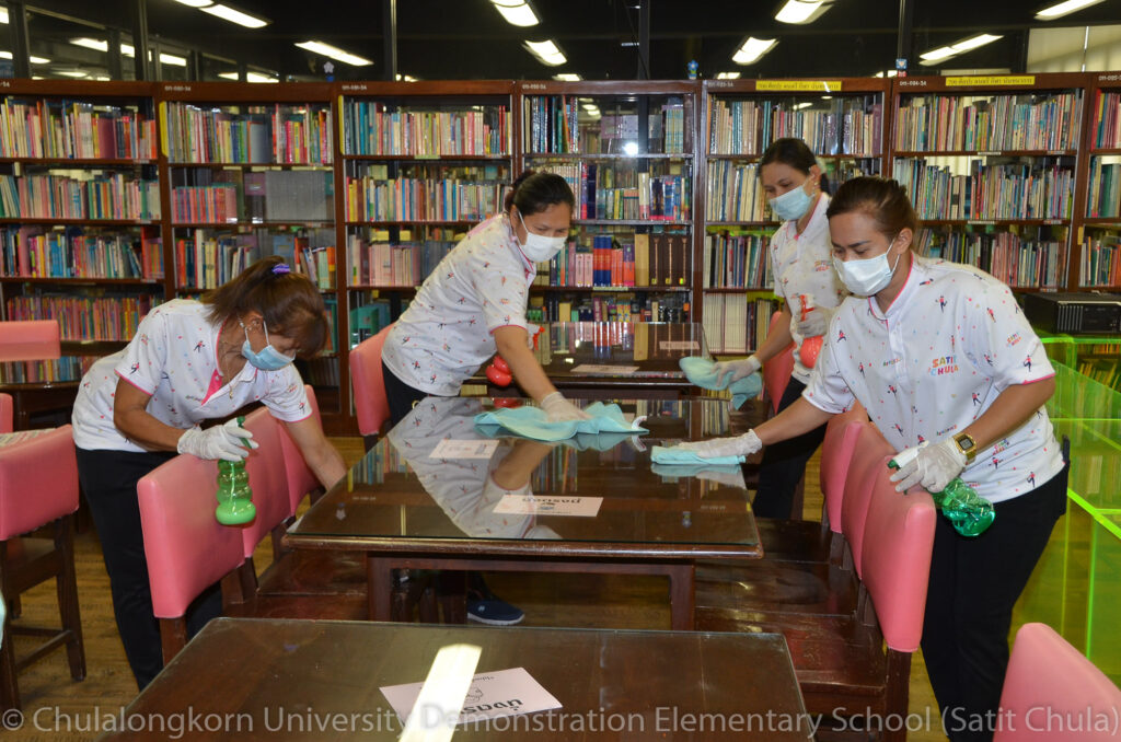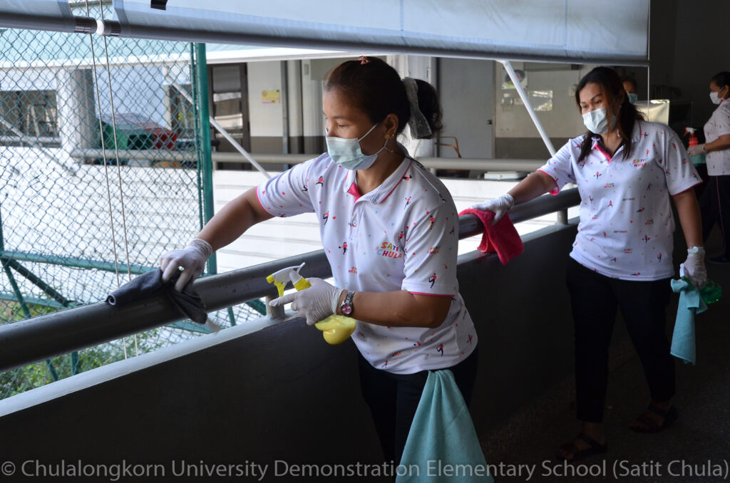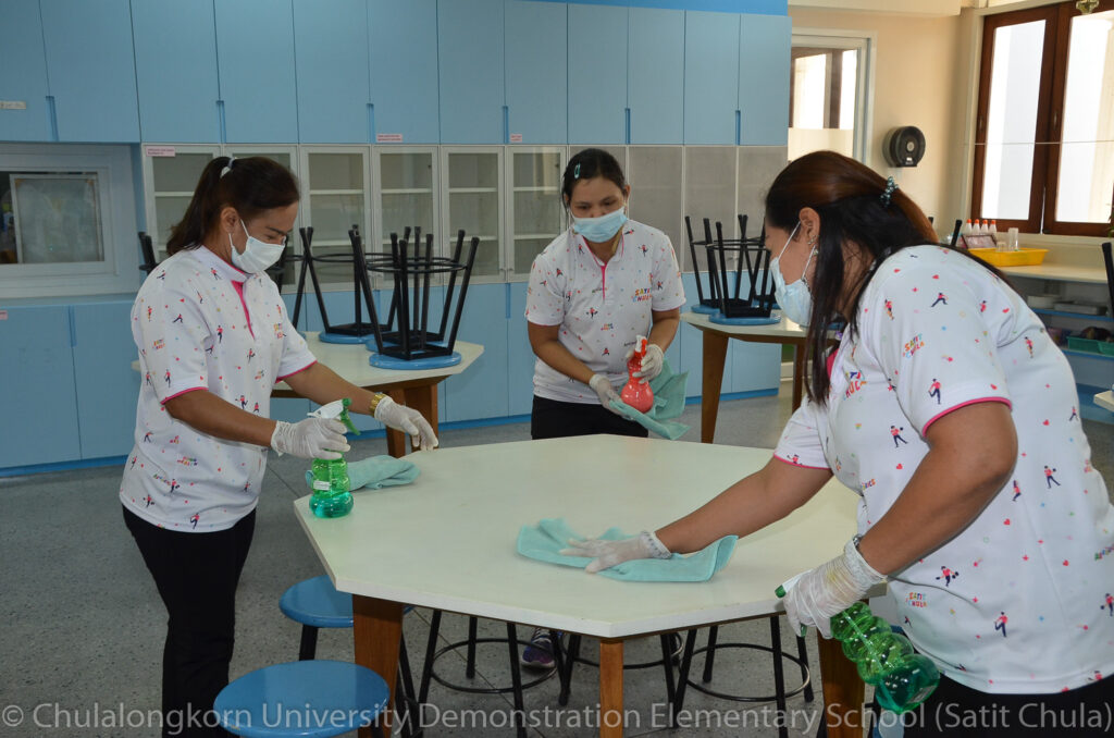 ทำความสะอาดโรงเรียนโดยหน่วยอาคารสถานที่ และหน่วยโภชนาการ