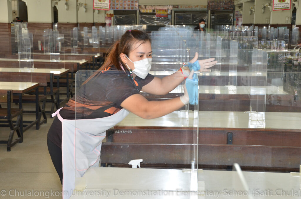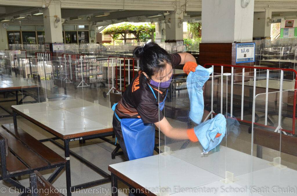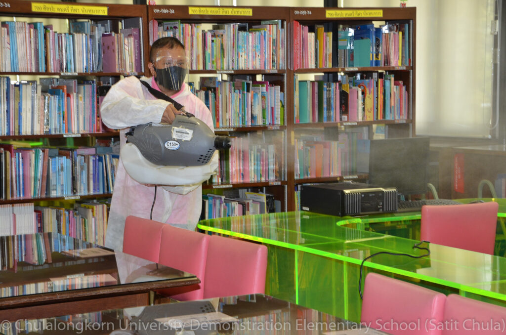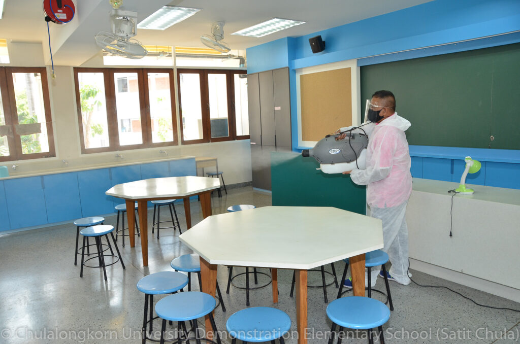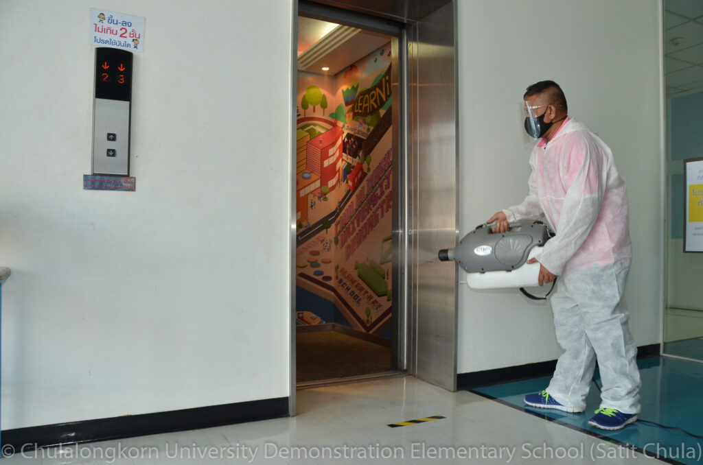 ทำความสะอาดโรงเรียนโดยหน่วยอาคารสถานที่ และหน่วยโภชนาการ
