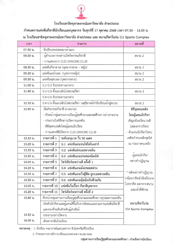 จดหมายโรงเรียน เรื่อง กิจกรรมกีฬาสีของนักเรียนและบุคลากร และการรับสายรัดข้อมือเข้าชมกิจกรรม By Web Master|2025-10-09T10:52:10+07:00October 8, 2025|จดหมายแจ้งจากโรงเรียน| View Larger Image