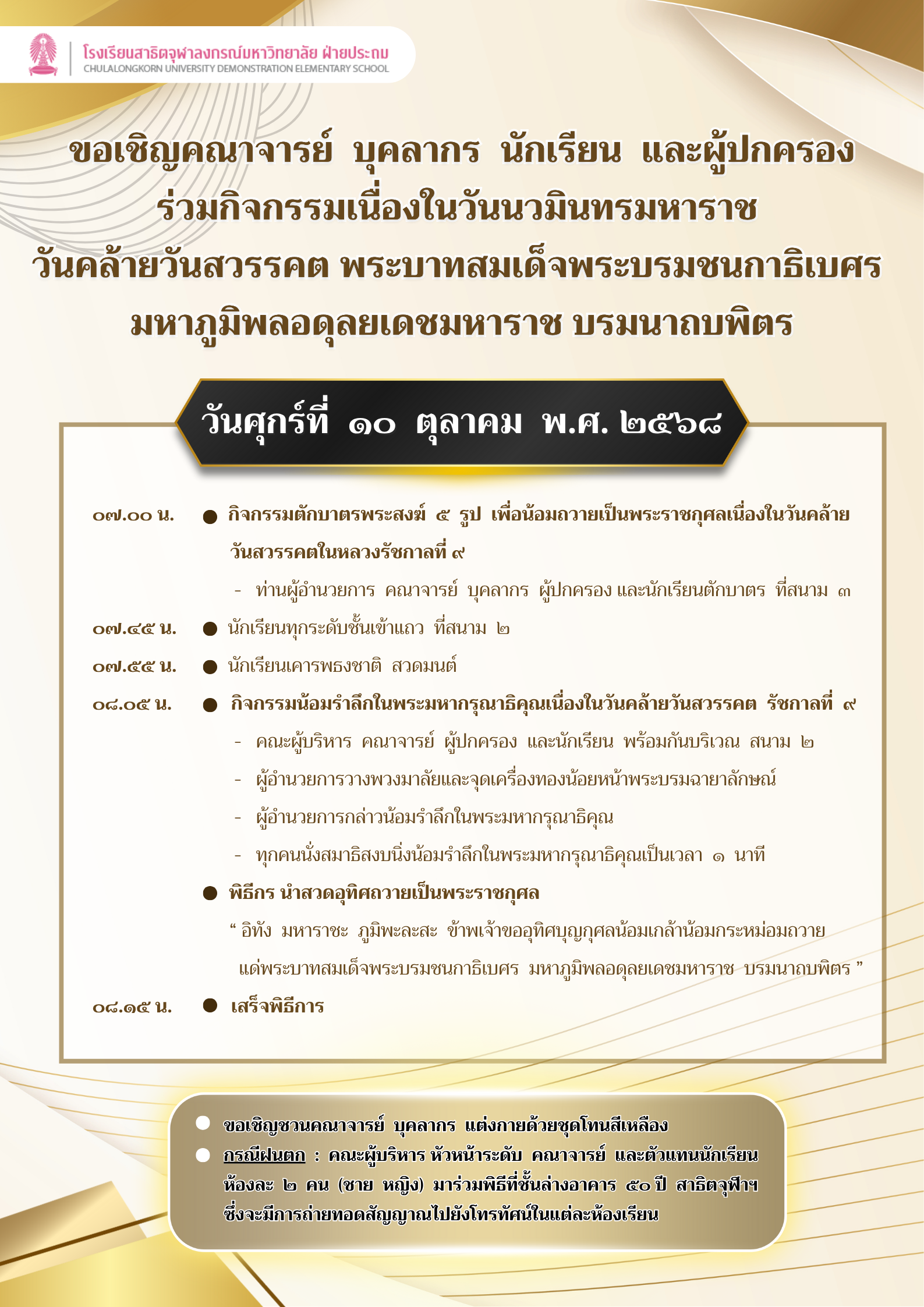 เข้สาู่เว็บไซต์โรงเรียน https://satite.chula.ac.th/วันนวมินทรมหาราช-2568/