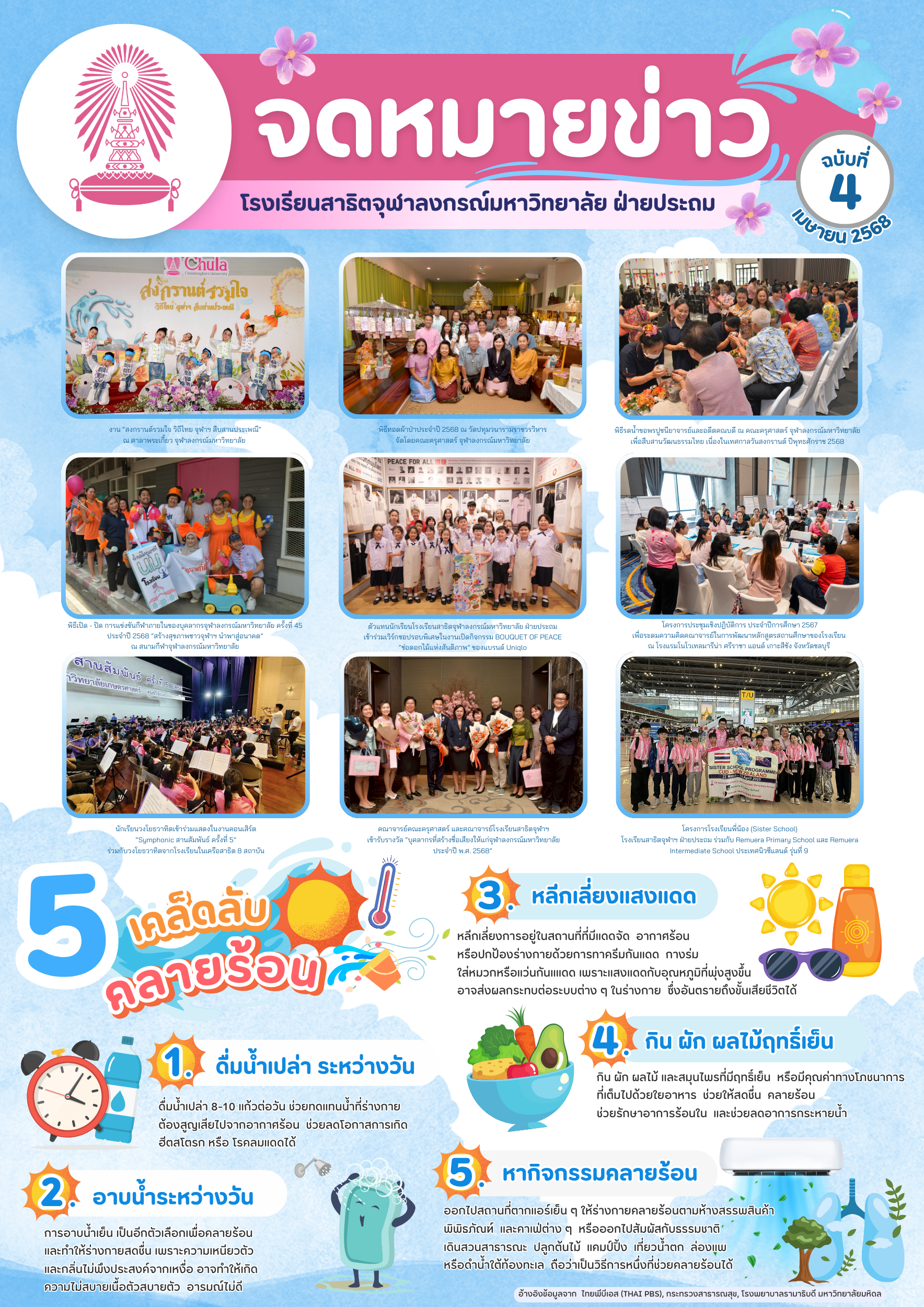 จดหมายข่าว โรงเรียนสาธิตจุฬาลงกรณ์มหาวิทยาลัย ฝ่ายประถม ฉบับที่ 4 เดือนเมษายน ประจำปี 2568