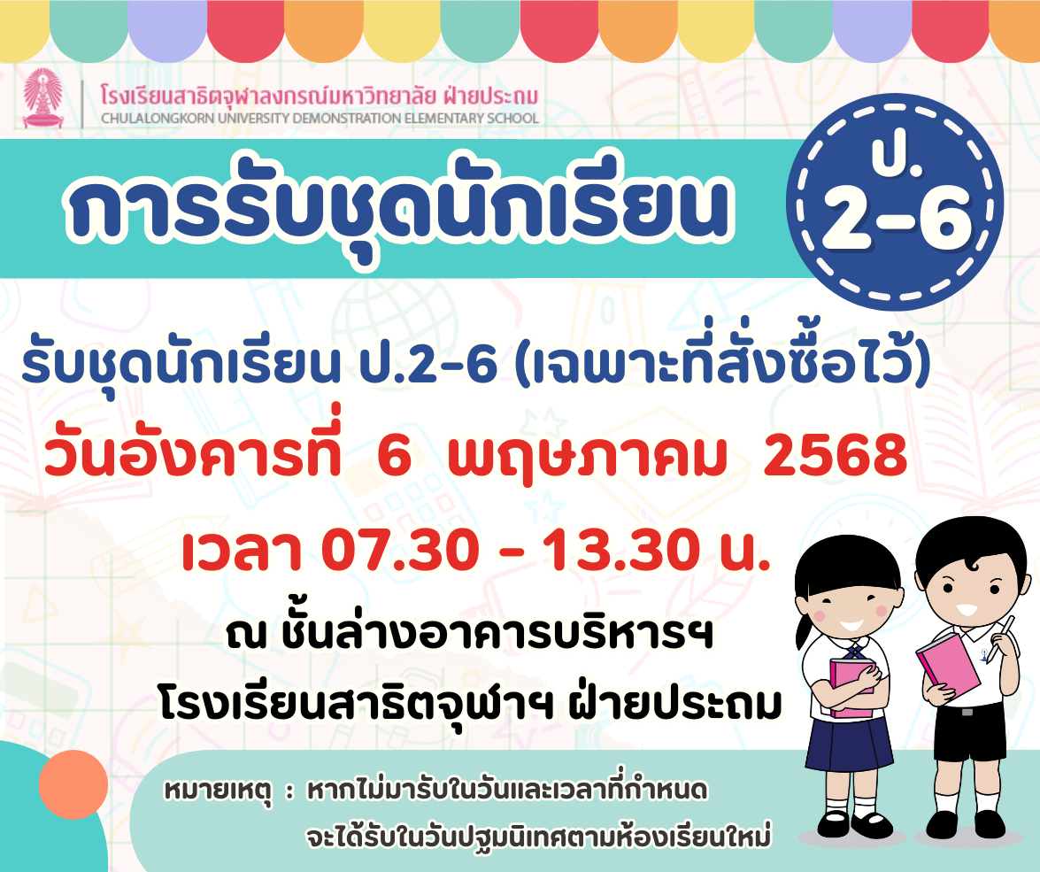 การรับชุดนักเรียน สำหรับนักเรียนชั้นประถมศึกษาปีที่ 2 – 6 ปีการศึกษา 2568