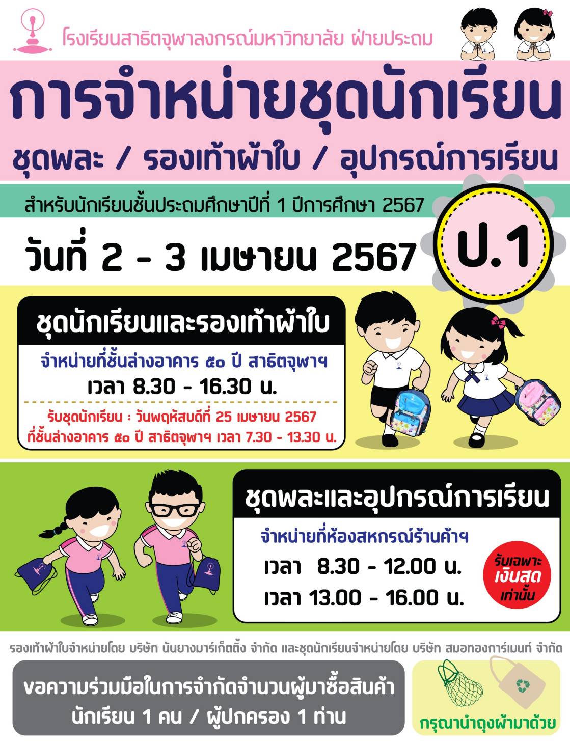รับชุดนักเรียน : วันพฤหัสบดีที่ 25 เมษายน 2567