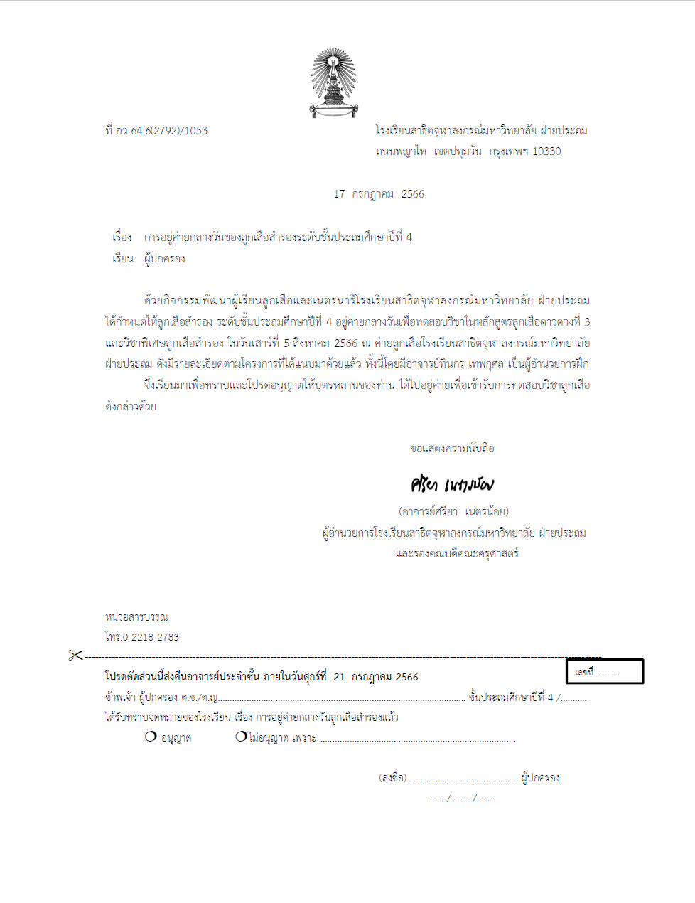 จดหมายโรงเรียน https://satite.chula.ac.th/จดหมายค่ายลูกเสือ-ป4-2566-1/