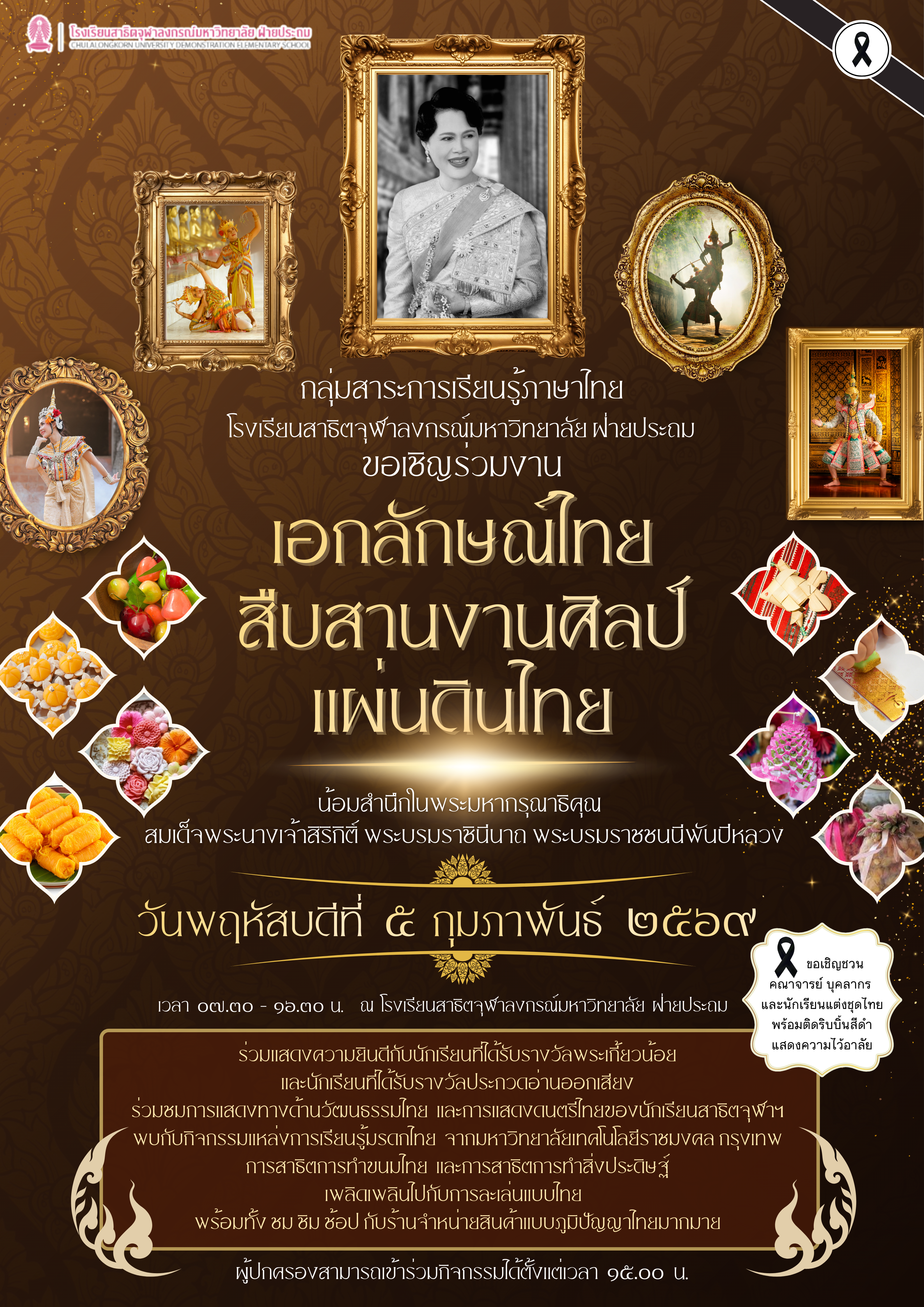 ขอเชิญชวนนักเรียน คณาจารย์ บุคลากร และผู้ปกครอง ร่วมงาน “เอกลักษณ์ไทย สืบสานงานศิลป์แผ่นดินไทย” น้อมสำนึกในพระมหากรุณาธิคุณ สมเด็จพระนางเจ้าสิริกิติ์ พระบรมราชินีนาถ พระบรมราชชนนีพันปีหลวงWeb Master2026-01-28T09:06:03+07:00January 28, 2026|Read More