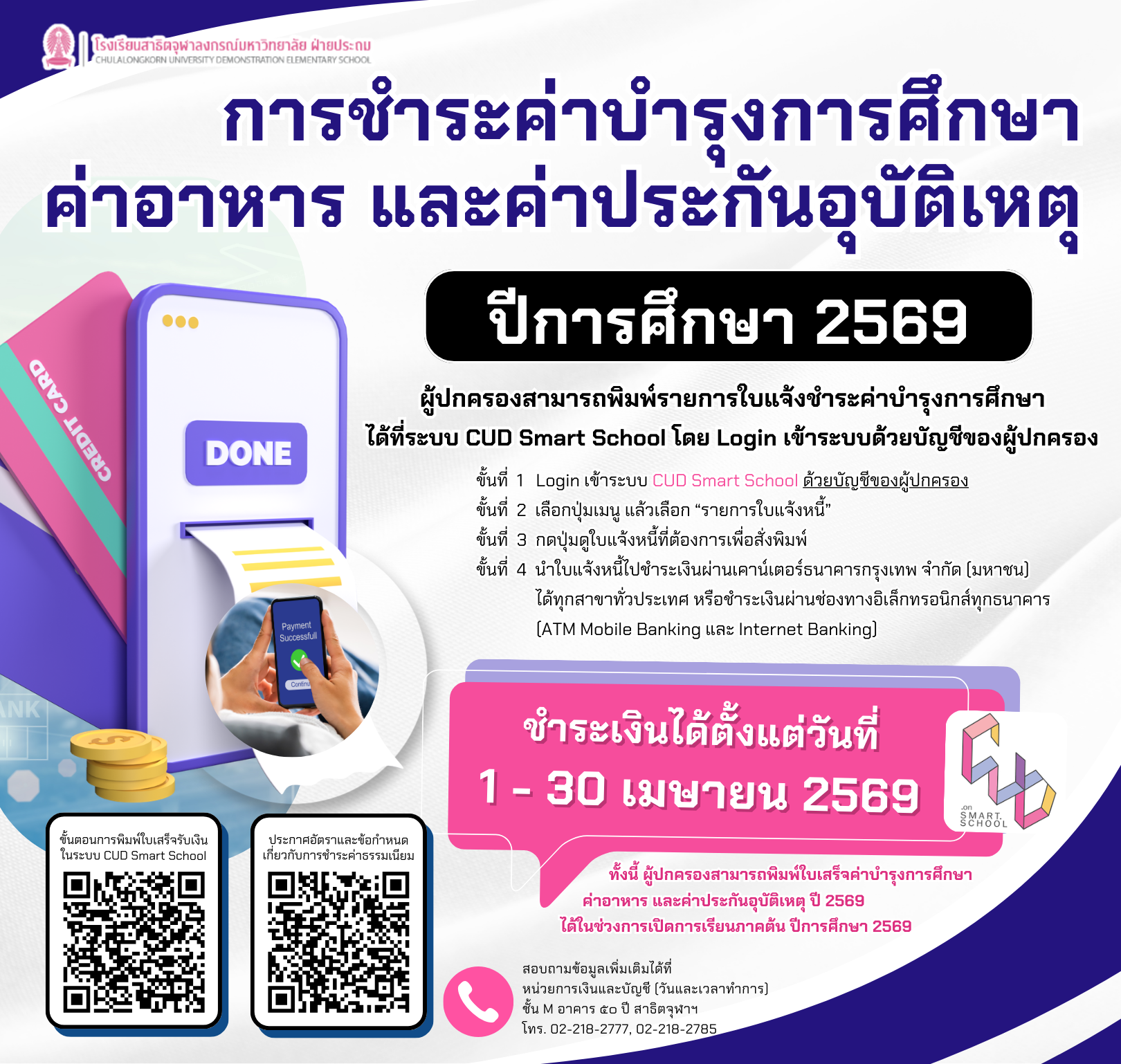 การชำระค่าบำรุงการศึกษา ค่าอาหาร และค่าประกันอุบัติเหตุ ปีการศึกษา 2569Web Master2026-03-19T12:06:56+07:00March 19, 2026|Read More