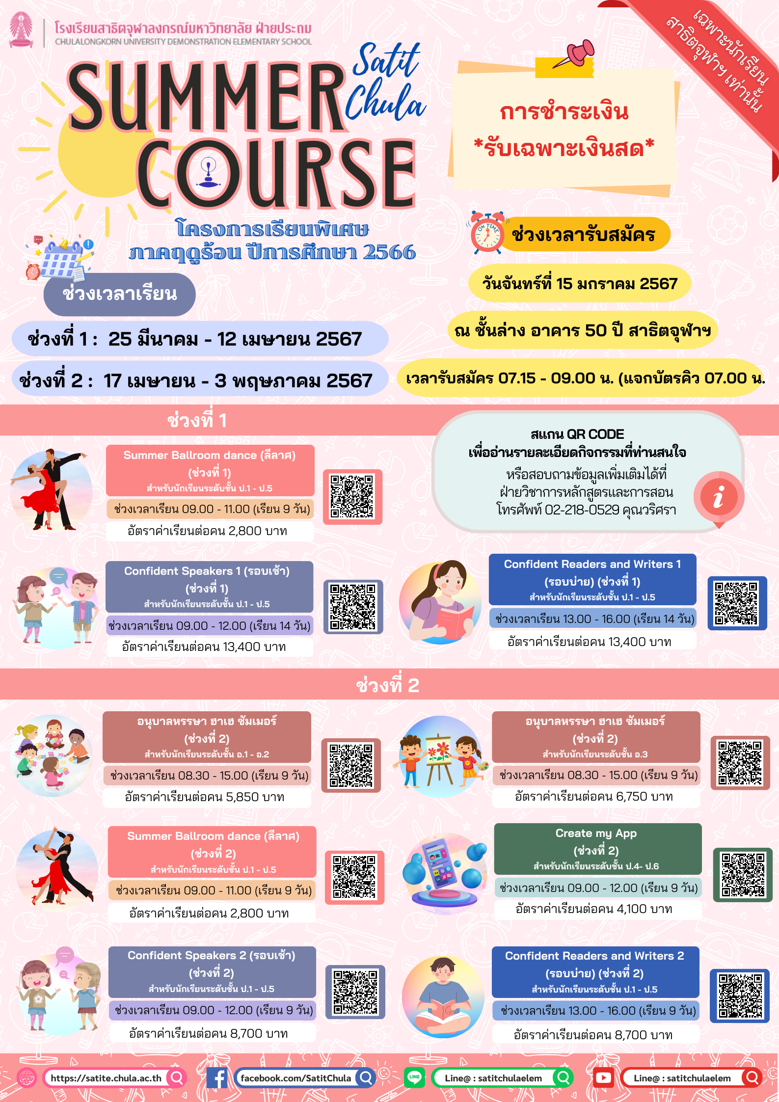 โรงเรียนสาธิตจุฬาลงกรณ์มหาวิทยาลัย ฝ่ายประถม ขอเชิญชวนนักเรียนระดับอนุบาลและระดับชั้นประถมศึกษาปีที่ 1 – 6 สมัครเข้าร่วมโครงการเรียนพิเศษ ภาคฤดูร้อน ปีการศึกษา 2566Web Master2023-12-26T17:18:41+07:00December 26, 2023|
