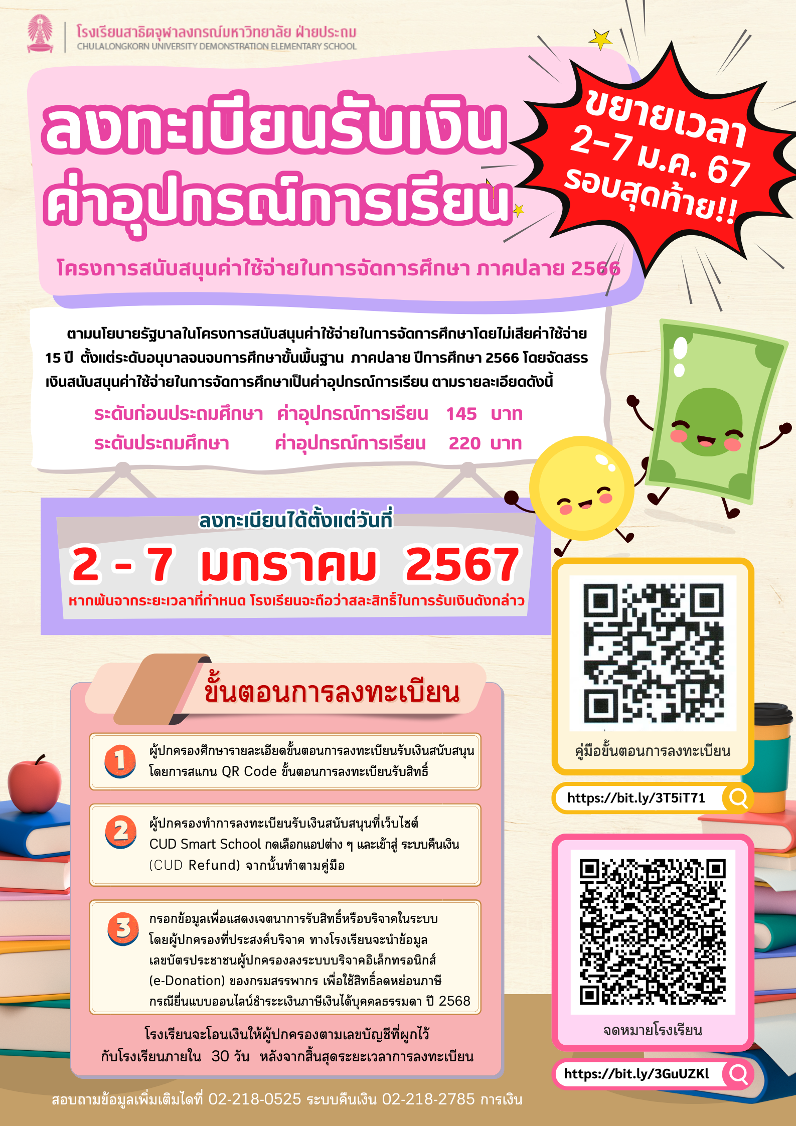 การลงทะเบียนรับเงินค่าอุปกรณ์การเรียนตามโครงการสนับสนุนค่าใช้จ่ายในการจัดการศึกษา ภาคปลาย ปีการศึกษา 2566 (รอบเพิ่มเติม)Web Master2023-12-28T15:03:25+07:00December 28, 2023|