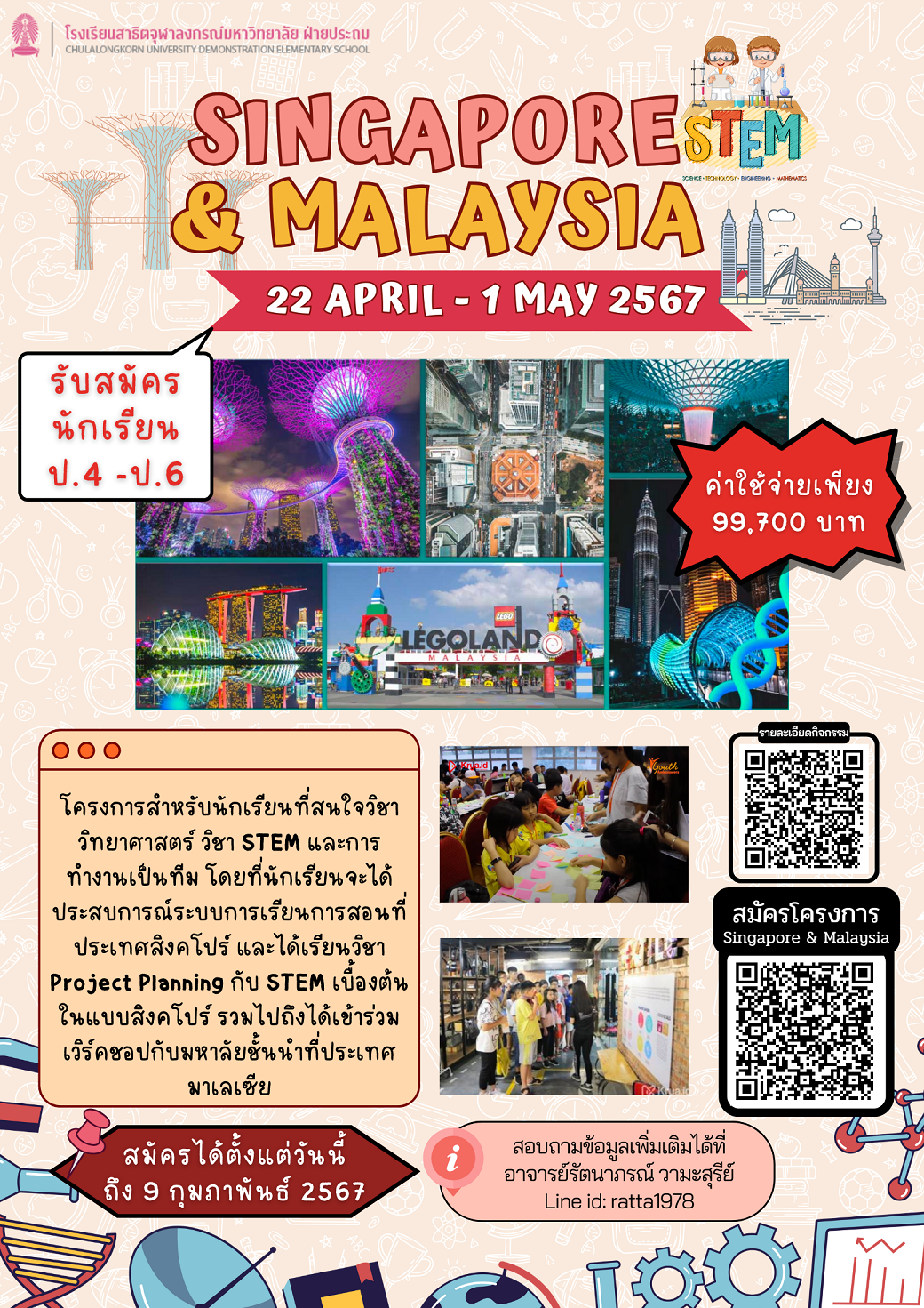 เปิดรับสมัครนักเรียนระดับชั้นประถมศึกษาปีที่ 4 – 6 เข้าร่วมโครงการสำหรับนักเรียนที่สนใจวิชาวิทยาศาสตร์ วิชา STEM และการทำงานเป็นทีม โดยที่นักเรียนจะได้ประสบการณ์ระบบการเรียนการสอนที่ประเทศสิงคโปร์Web Master2024-01-29T15:56:20+07:00December 25, 2023|