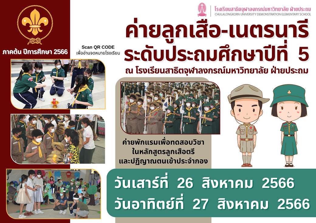 การอยู่ค่ายพักแรมของลูกเสือและเนตรนารี ระดับชั้นประถมศึกษาปีที่ 5 ภาคต้น ปีการศึกษา 2566Web Master2023-08-25T10:32:49+07:00August 22, 2023|