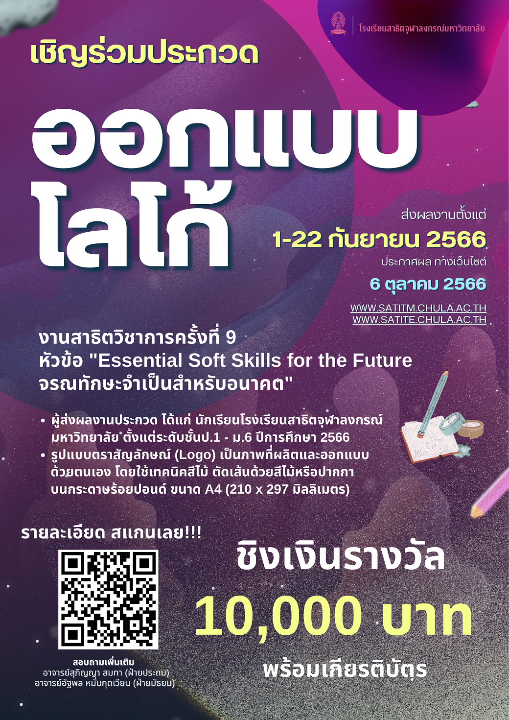 โรงเรียนสาธิตจุฬาลงกรณ์มหาวิทยาลัย ขอเชิญร่วมประกวด ออกแบบโลโก้ งานสาธิตวิชาการ ครั้งที่ 9 หัวข้อ “Essential Soft Skills for the Future “จรณทักษะจำเป็นสำหรับอนาคต” ชิงเงินรางวัล 10,000 บาทWeb Master2023-08-28T13:57:22+07:00August 28, 2023|