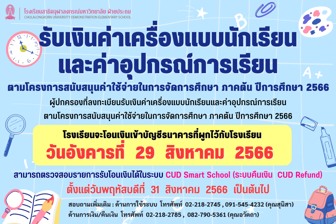 การรับเงินค่าเครื่องแบบนักเรียนและค่าอุปกรณ์การเรียนตามโครงการสนับสนุนค่าใช้จ่ายในการจัดการศึกษา ภาคต้น ปีการศึกษา 2566Web Master2023-08-25T10:31:27+07:00August 24, 2023|
