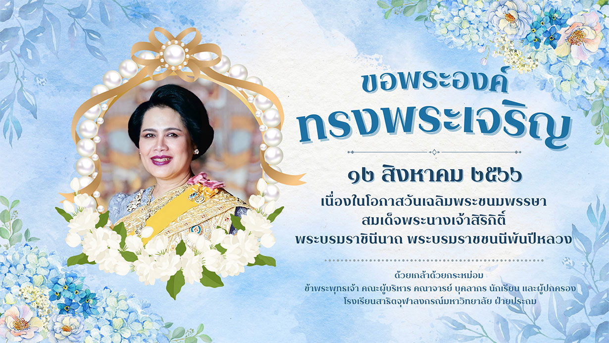 ขอเชิญคณาจารย์ บุคลากร นักเรียน และผู้ปกครอง ร่วมพิธีตักบาตรเพื่อน้อมถวายเป็นพระราชกุศลและพิธีถวายพระพรชัยมงคลเนื่องในโอกาสเฉลิมพระชนมพรรษา สมเด็จพระนางเจ้าสิริกิติ์ พระบรมราชินีนาถ พระบรมราชชนนีพันปีหลวง (12 สิงหาคม 2566)Web Master2023-08-08T15:55:00+07:00August 8, 2023|