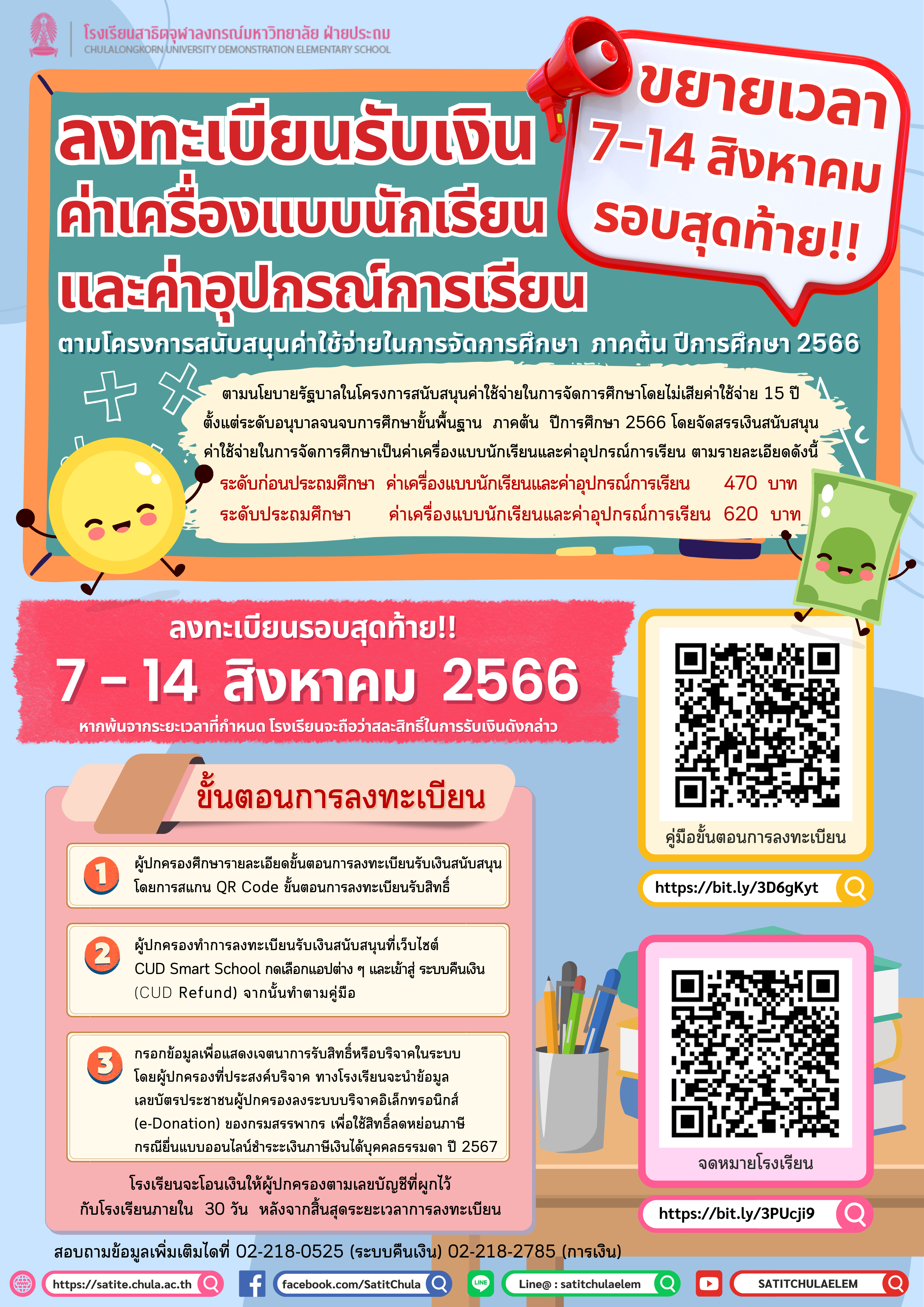ขยายเวลาการลงทะเบียนรับเงินค่าเครื่องแบบนักเรียนและค่าอุปกรณ์การเรียนตามโครงการสนับสนุนค่าใช้จ่ายในการจัดการศึกษา ภาคต้น ปีการศึกษา 2566 (รอบสุดท้าย 7 – 14 สิงหาคม 2566)Web Master2023-08-03T10:49:30+07:00August 3, 2023|