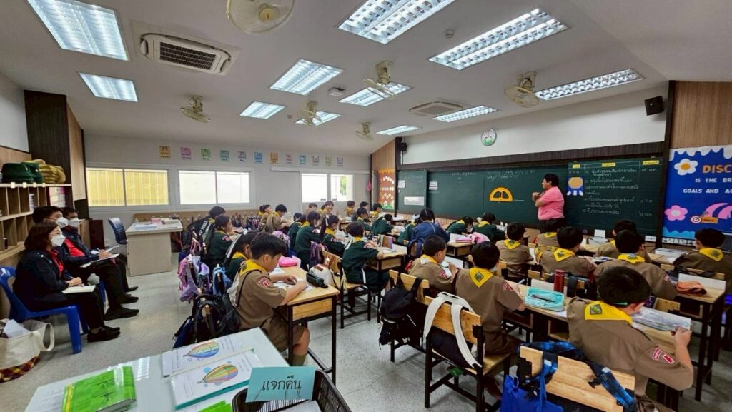 คณะครูในโครงการที่ปรึกษาทางวิชาการโรงเรียนเทศบาล 1 ศรีเกิด จังหวัดเชียงราย เข้าศึกษาดูงานและสังเกตการสอนตามแนวทางการสอนของโรงเรียนสาธิตจุฬาฯ ฝ่ายประถม ในรายวิชาภาษาอังกฤษและวิชาวิทยาศาสตร์ (01/07/68) By Web Master|2025-08-25T18:02:11+07:00July 1, 2025|ข่าวกิจกรรมนักเรียน| View Larger Image