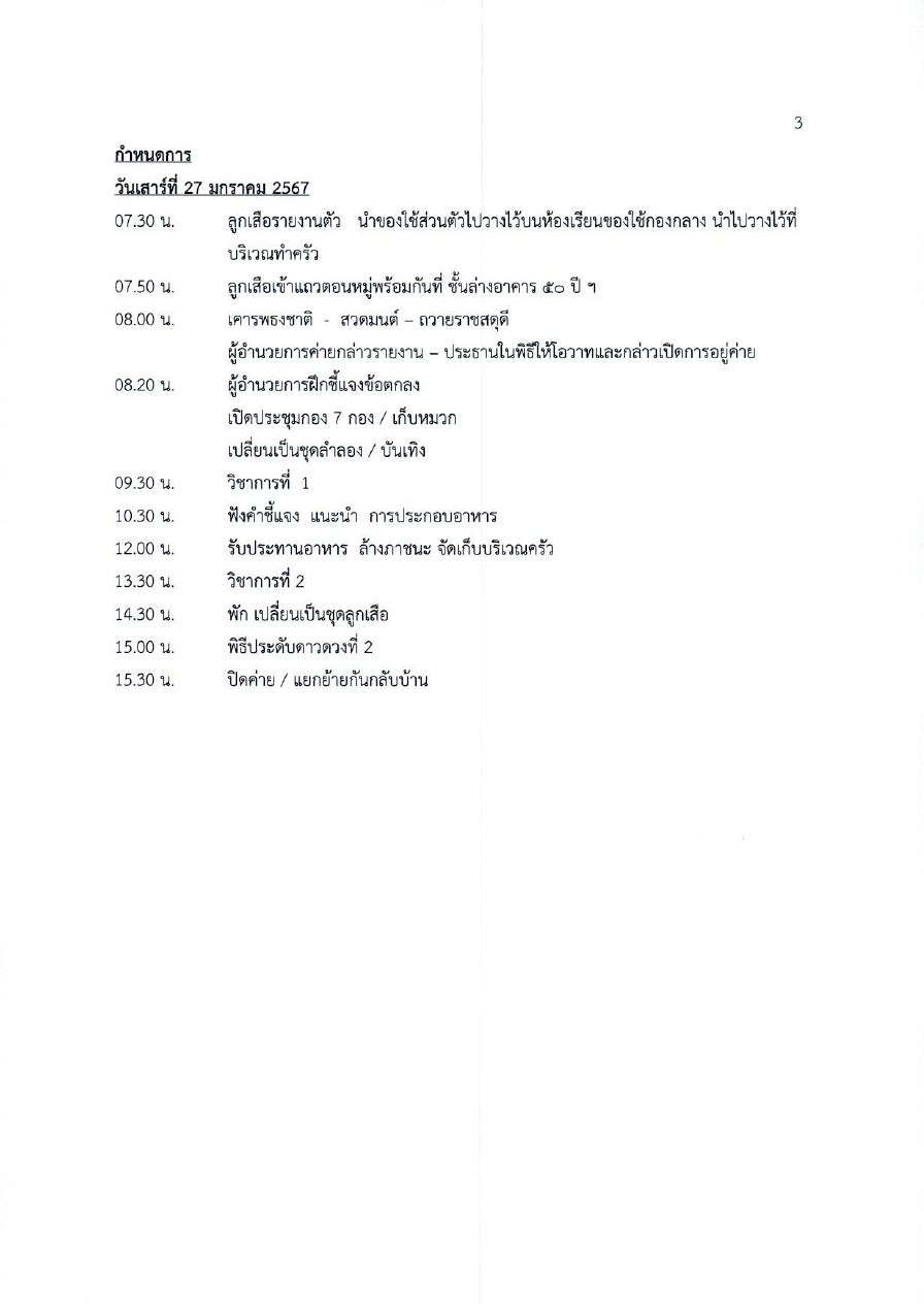 เรื่อง การอยู่ค่ายกลางวันของลูกเสือสำรองระดับชั้นประถมศึกษาปีที่ 3 ภาคปลาย ปีการศึกษา 2566