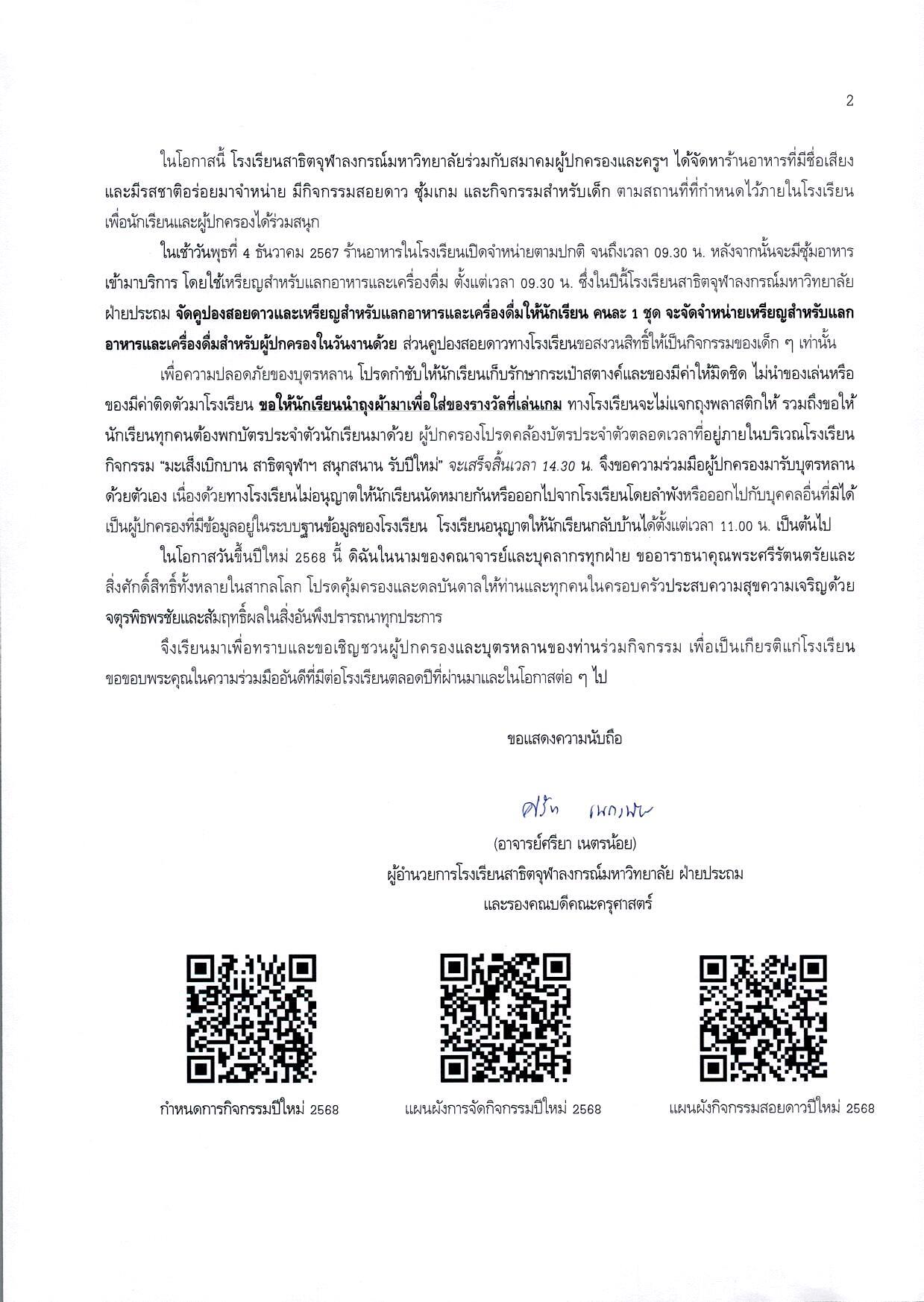 จึงเรียนมาเพื่อทราบและขอเชิญชวนผู้ปกครองและบุตรหลานของท่านร่วมกิจกรรม เพื่อเป็นเกียรติแก่โรงเรียนขอขอบพระคุณในความร่วมมืออันดีที่มีต่อโรงเรียนตลอดปีที่ผ่านมาและในโอกาสต่อ ๆ ไป