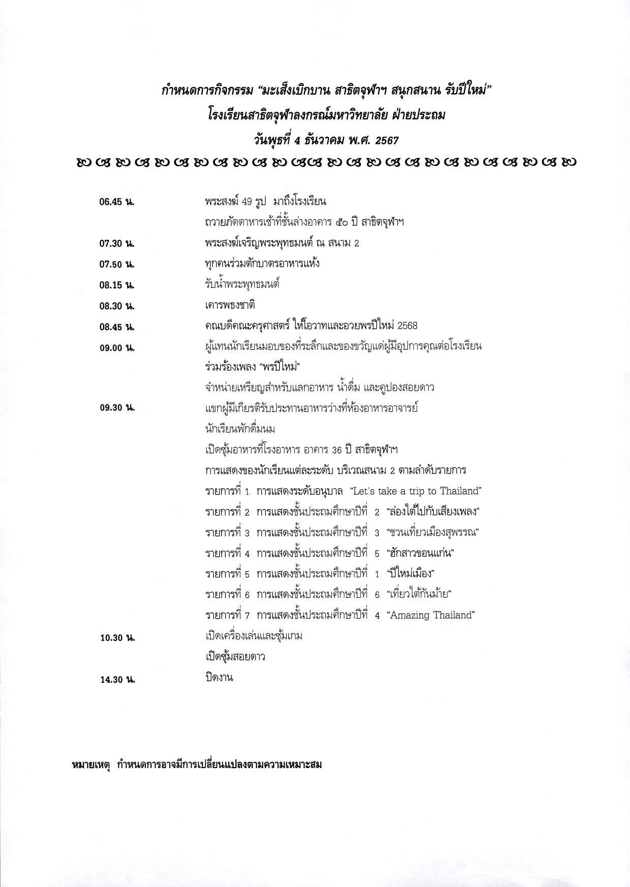 📌 กำหนดการกิจกรรมปีใหม่ 2568