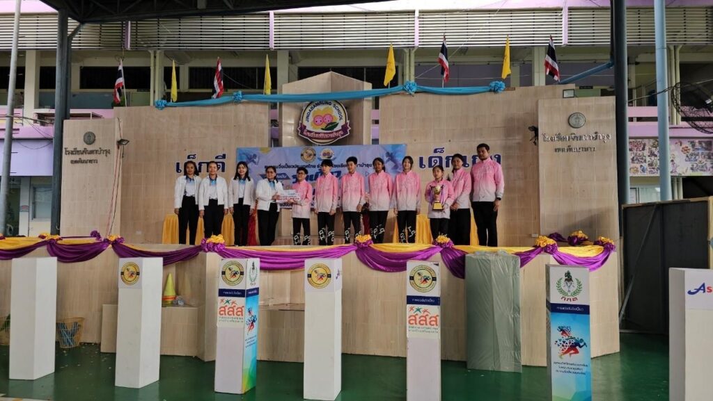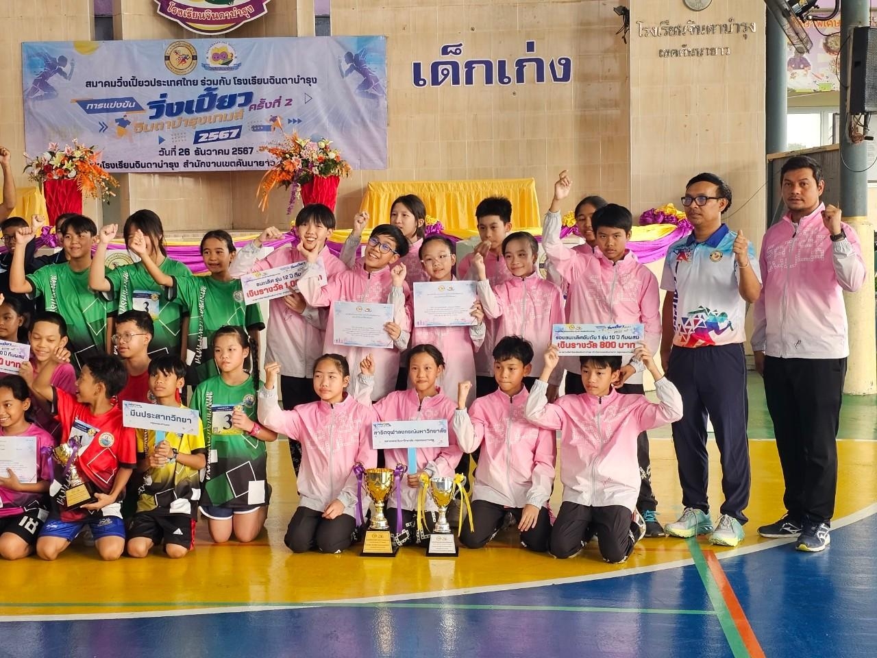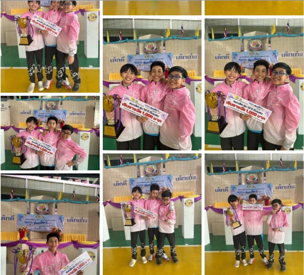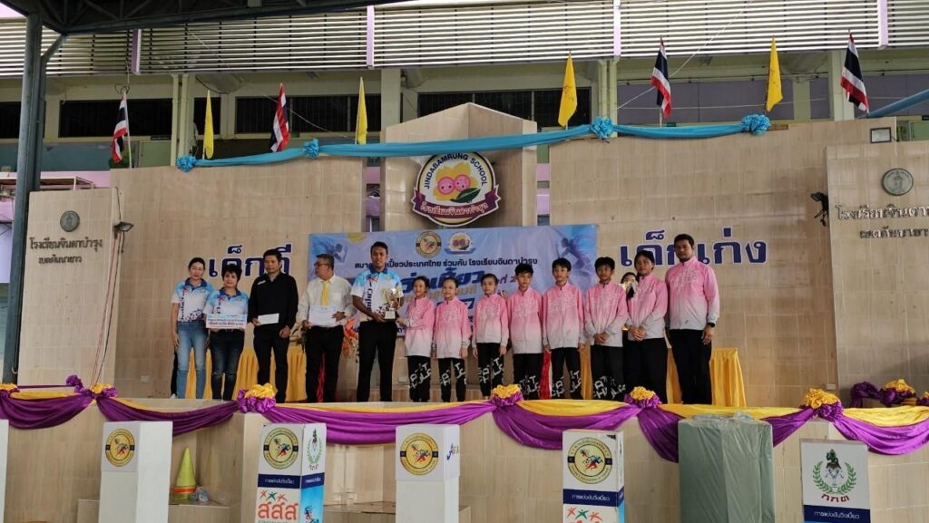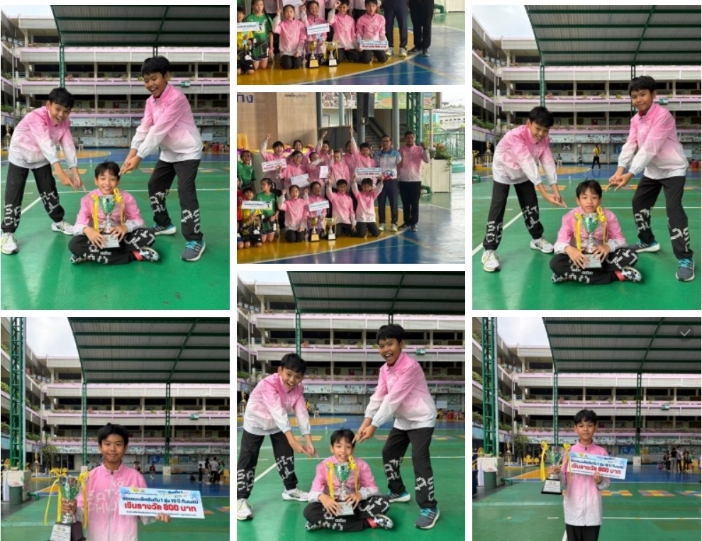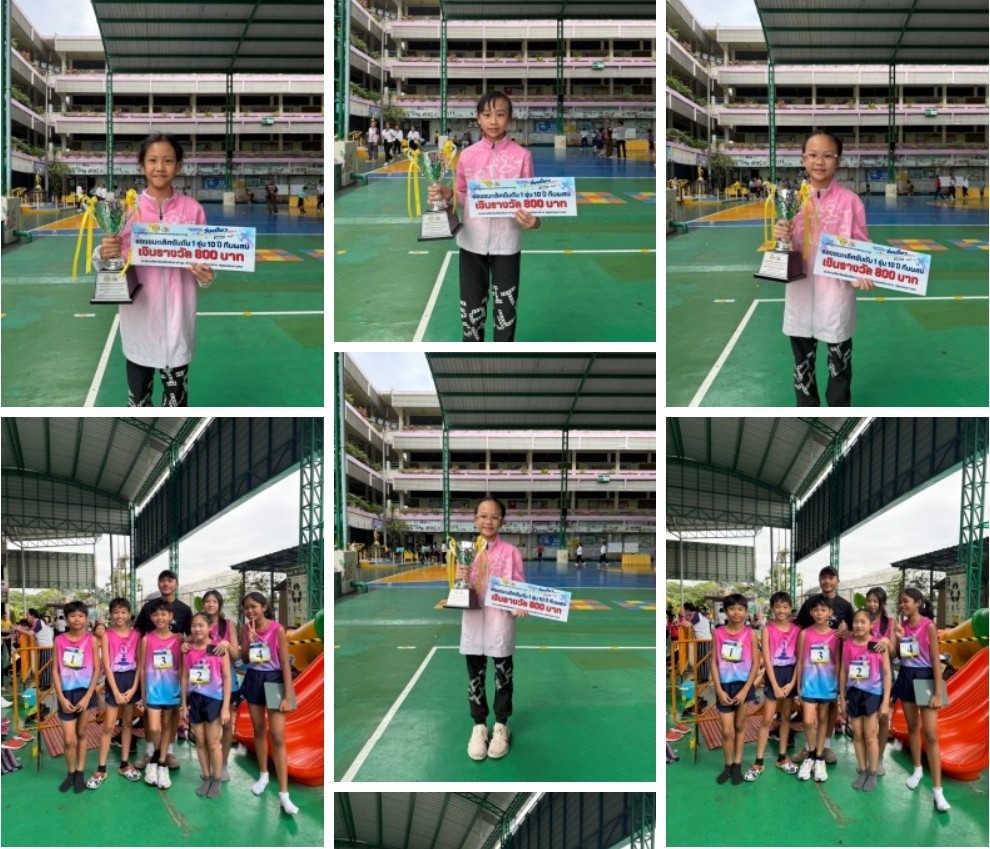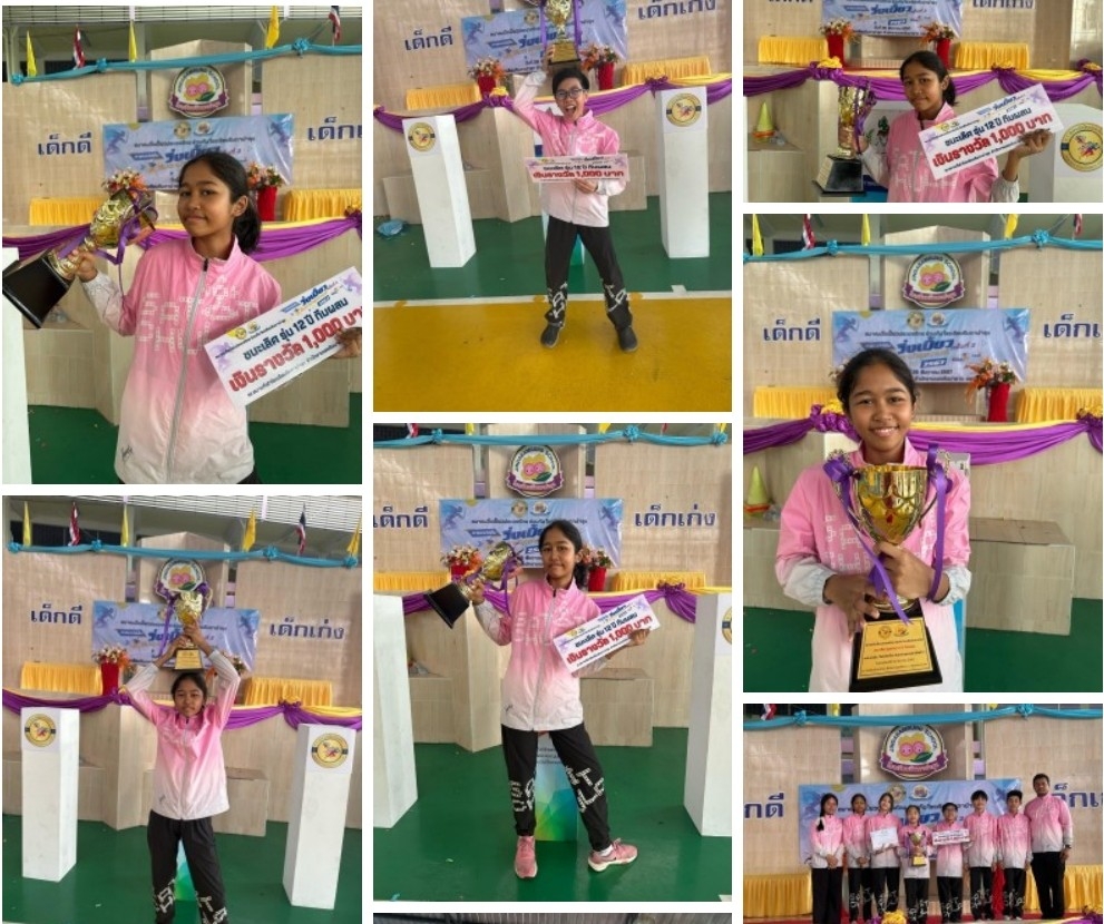 ที่ได้รับ 2 ถ้วยรางวัลจากการแข่งขันวิ่งเปี้ยว