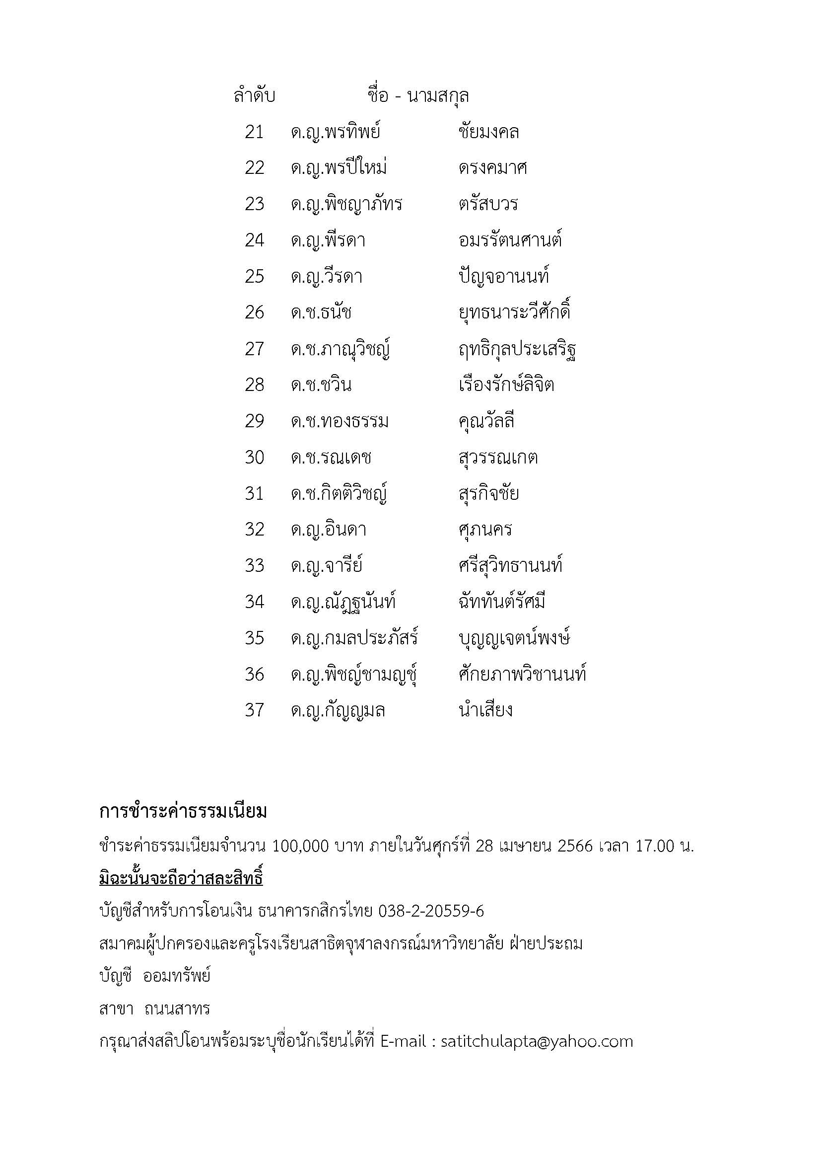 กรุณาส่งสลิปโอนเงินมาที่ E-mail : satitchulapta@yahoo.com