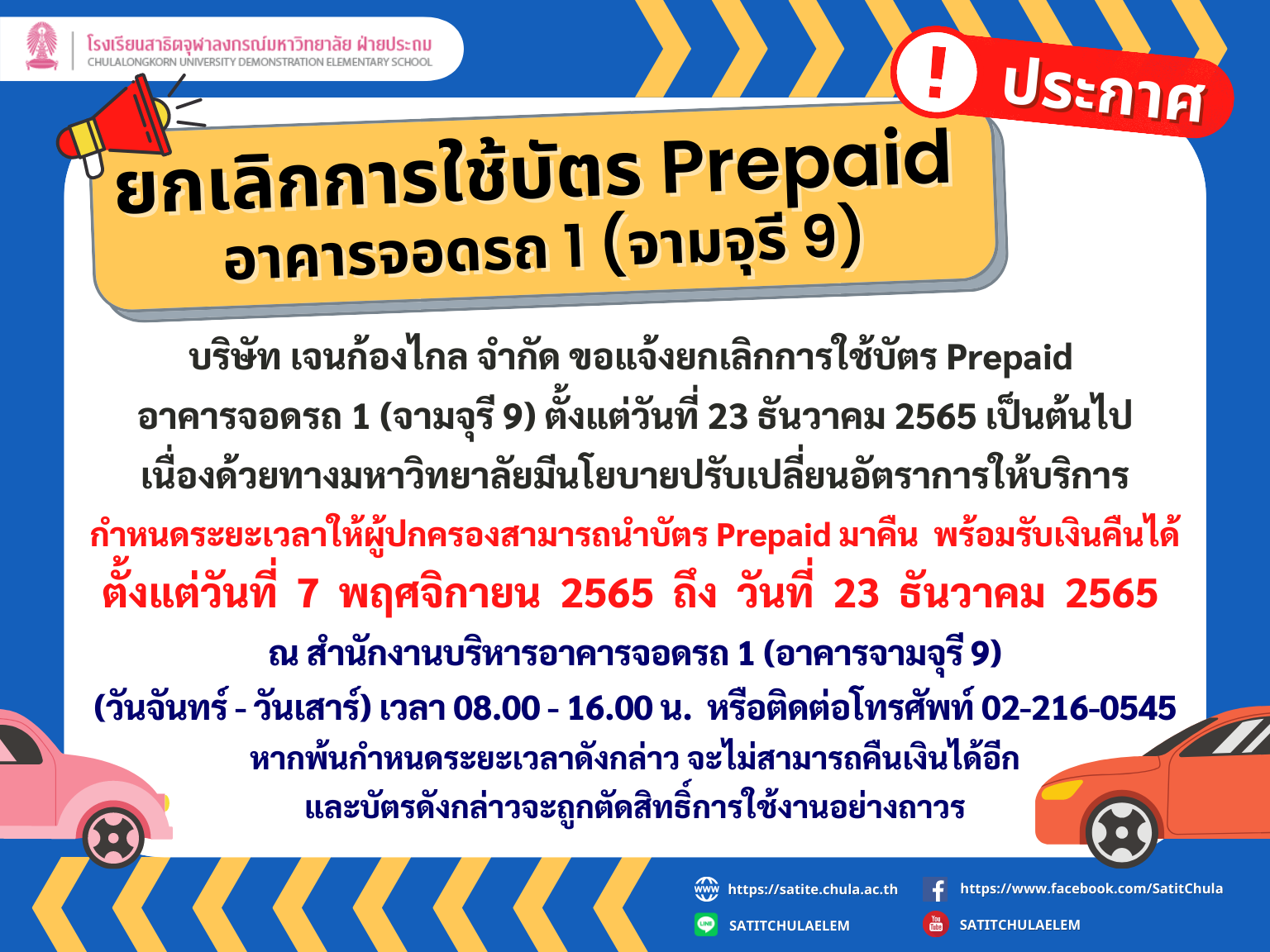 เรื่อง ยกเลิกการใช้บัตร Prepaid อาคารจอดรถ 1 (จามจุรี 9)