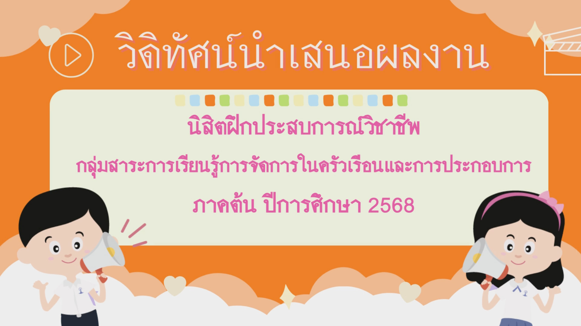 วีดิทัศน์นำเสนอผลงานนิสิตฝึกประสบการณ์วิชาชีพ กลุ่มสาระการเรียนรู้การจัดการในครัวเรือนและการประกอบการ ภาคต้น ปีการศึกษา 2568