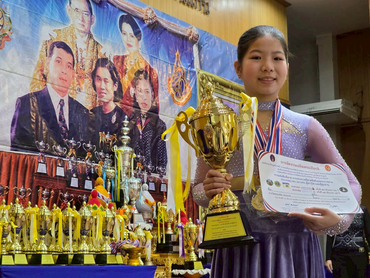 อันเป็นรางวัลจากการแข่งขันกีฬาลีลาศนานาชาติชิงถ้วยพระราชทาน ประจำปี 2568 ประกวดลีลาศยุวชน – เยาวชน ผู้อาวุโส และผู้สูงอายุ เมื่อวันอาทิตย์ที่ 30 มีนาคม 2568 ณ ศาลาประชาคม องค์การบริหารส่วนจังหวัดขอนแก่น จังหวัดขอนแก่น จัดโดยจังหวัดขอนแก่น สโมสรไลออนส์ บึงแก่นนคร เซนเทนเนียลขอนแก่น ชมรมผู้สอนและผู้ผึกสอนกีฬาลีลาศจังหวัดขอนแก่น กรรมการตัดสินจากสมาคมครูลีลาศแห่งประเทศไทย