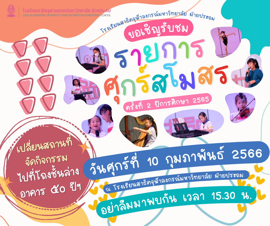 ร่วมรับชมกิจกรรมรายการศุกร์สโมสร ครั้งที่ 2 ปีการศึกษา 2565