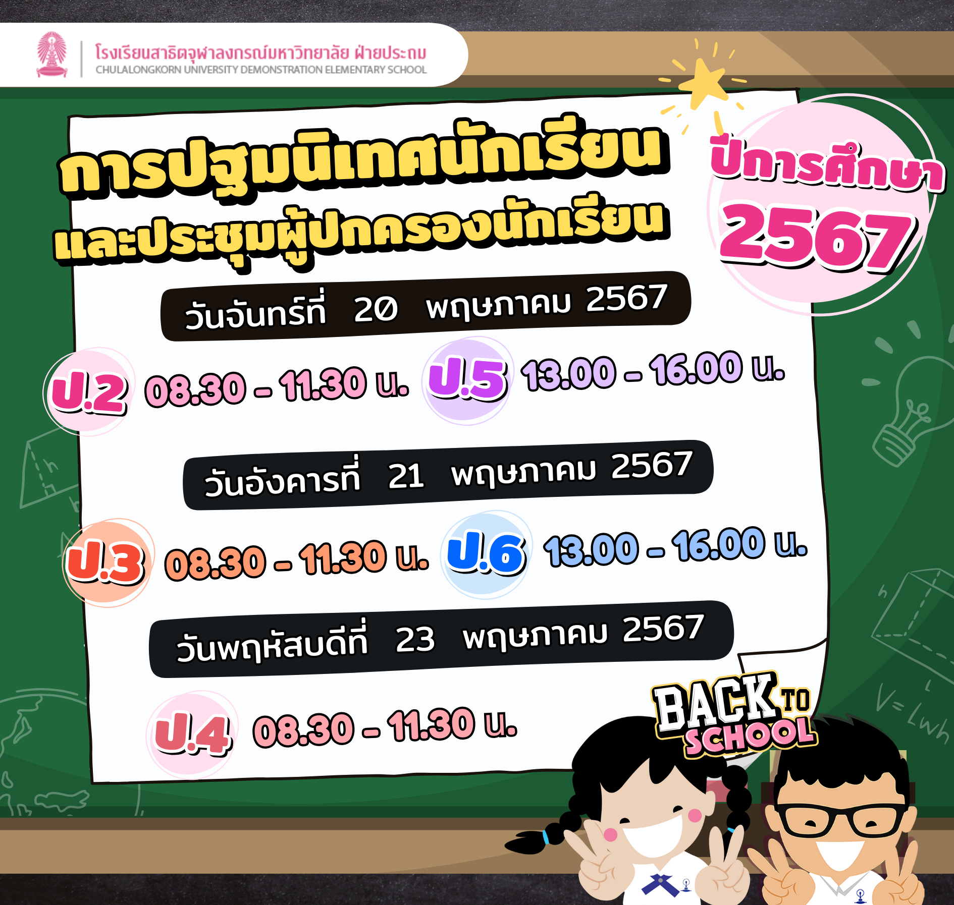 ประกาศรายชื่อนักเรียนที่ได้รับคัดเลือกให้เข้าเรียน หลักสูตร CUD ALTERNATIVE PROGRAM ระดับชั้นประถมศึกษาปีที่ 1 ปีการศึกษา 2567