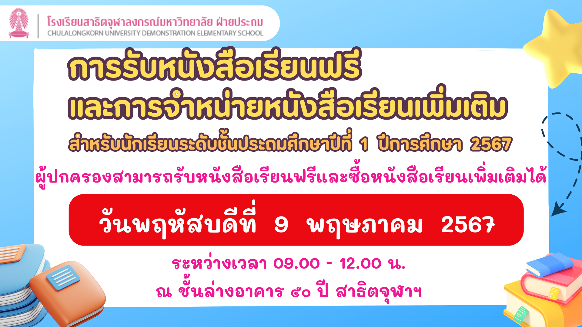 การรับหนังสือเรียนฟรีและการจำหน่ายหนังสือเรียนเพิ่มเติม สำหรับนักเรียนระดับชั้นประถมศึกษาปีที่ 1 ปีการศึกษา 2567