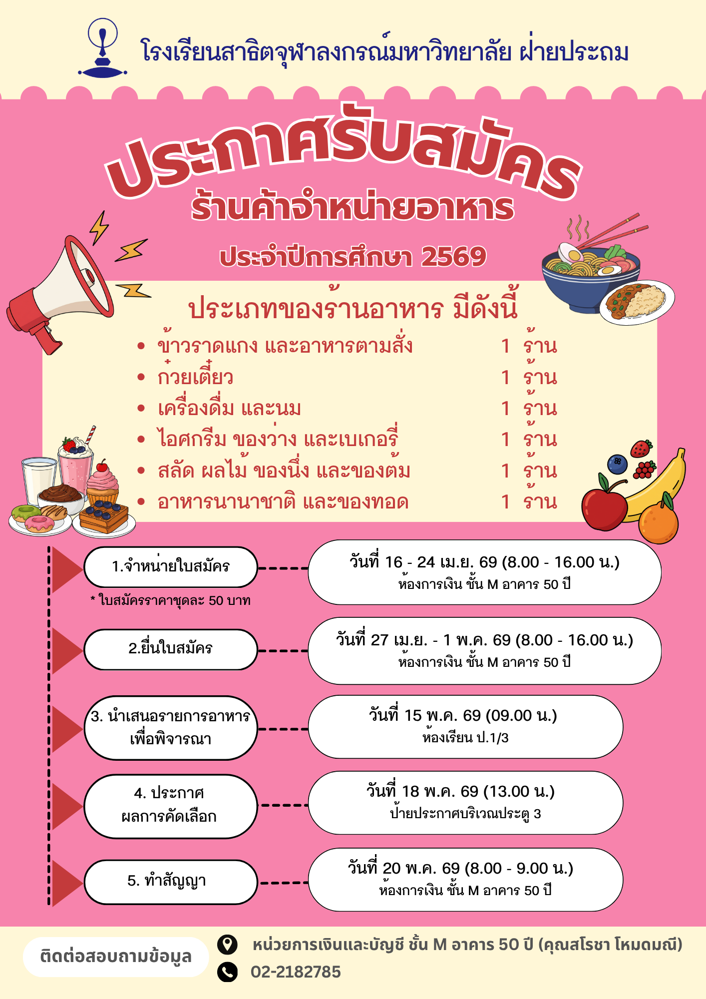 ประกาศรับสมัครร้านค้าจำหน่ายอาหาร ประจำปีการศึกษา 2569
