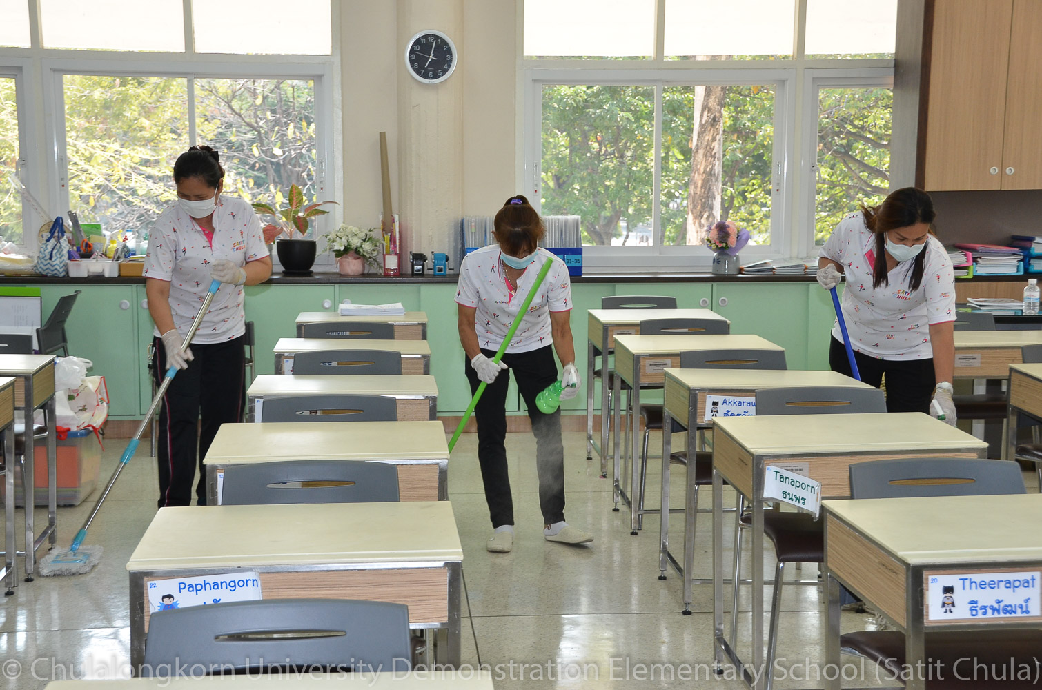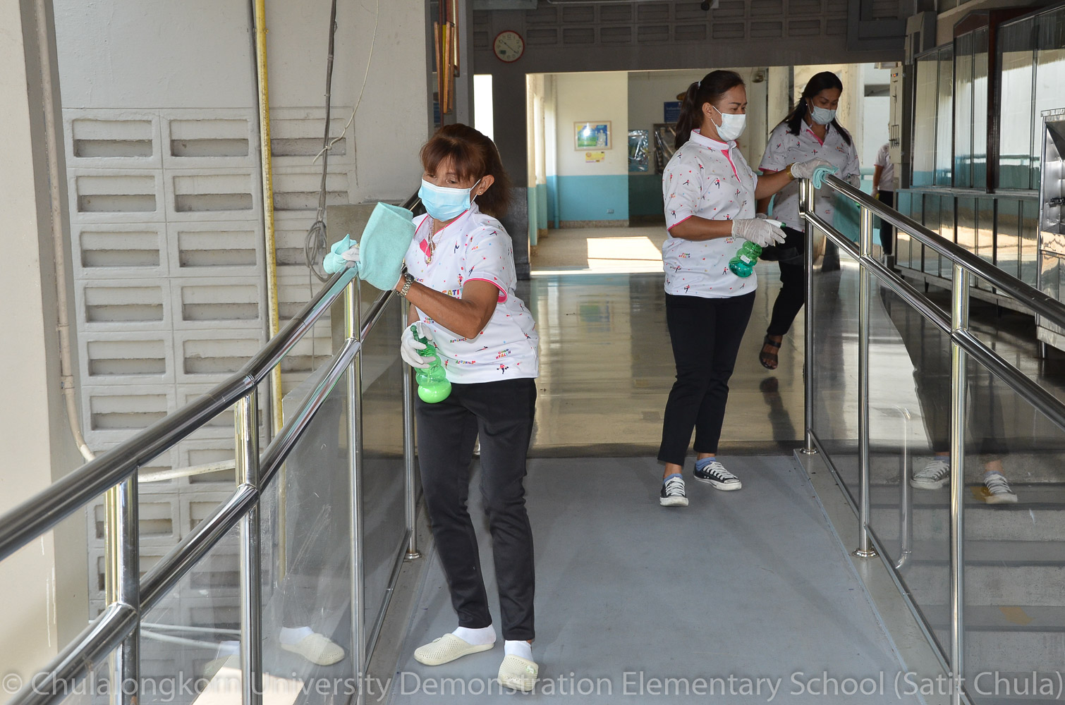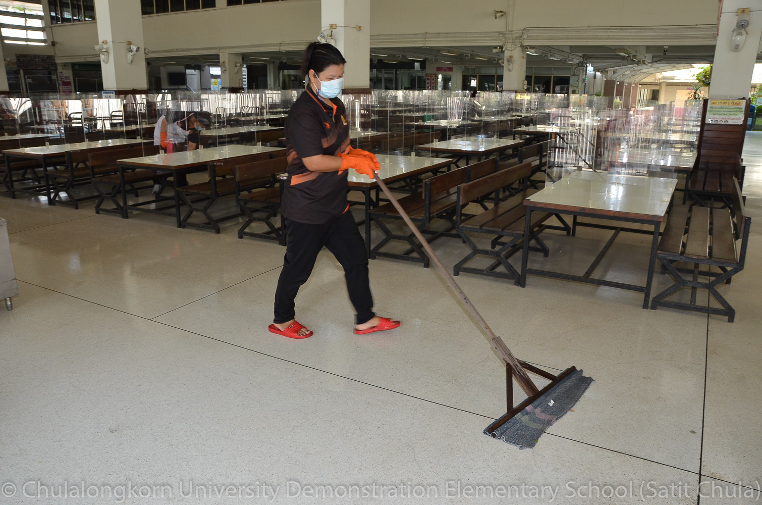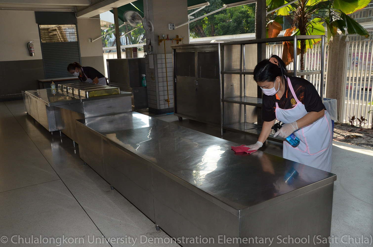 ทำความสะอาดโรงเรียนโดยหน่วยอาคารสถานที่ และหน่วยโภชนาการ