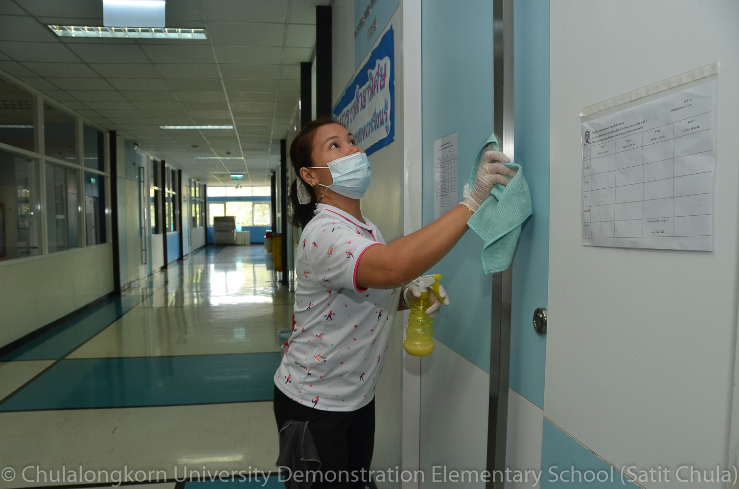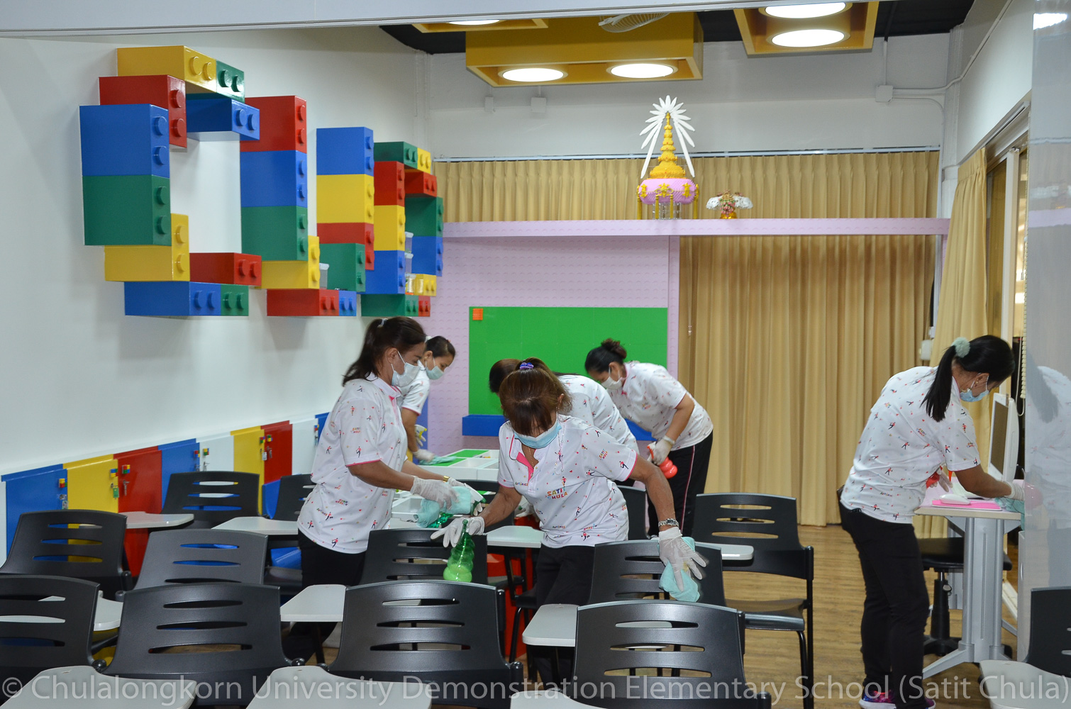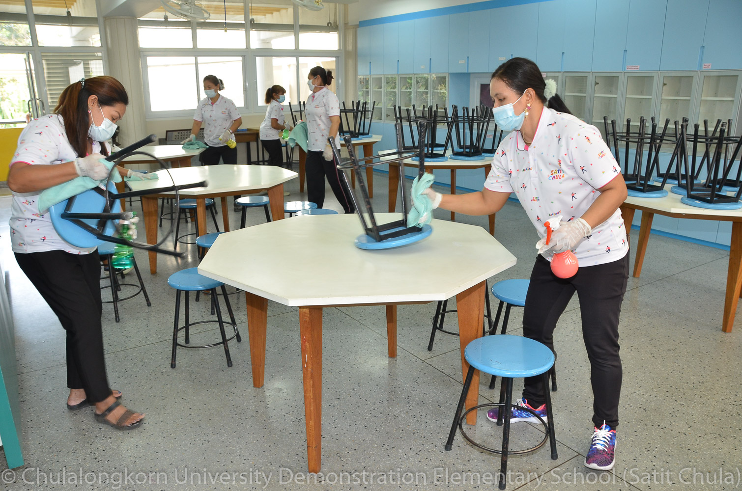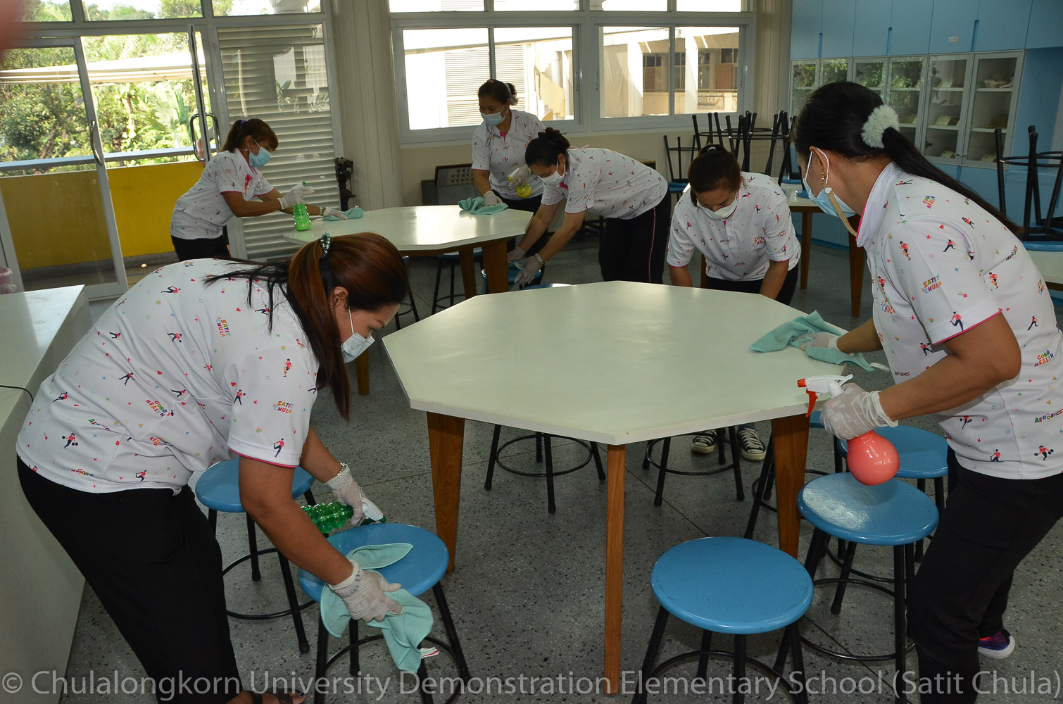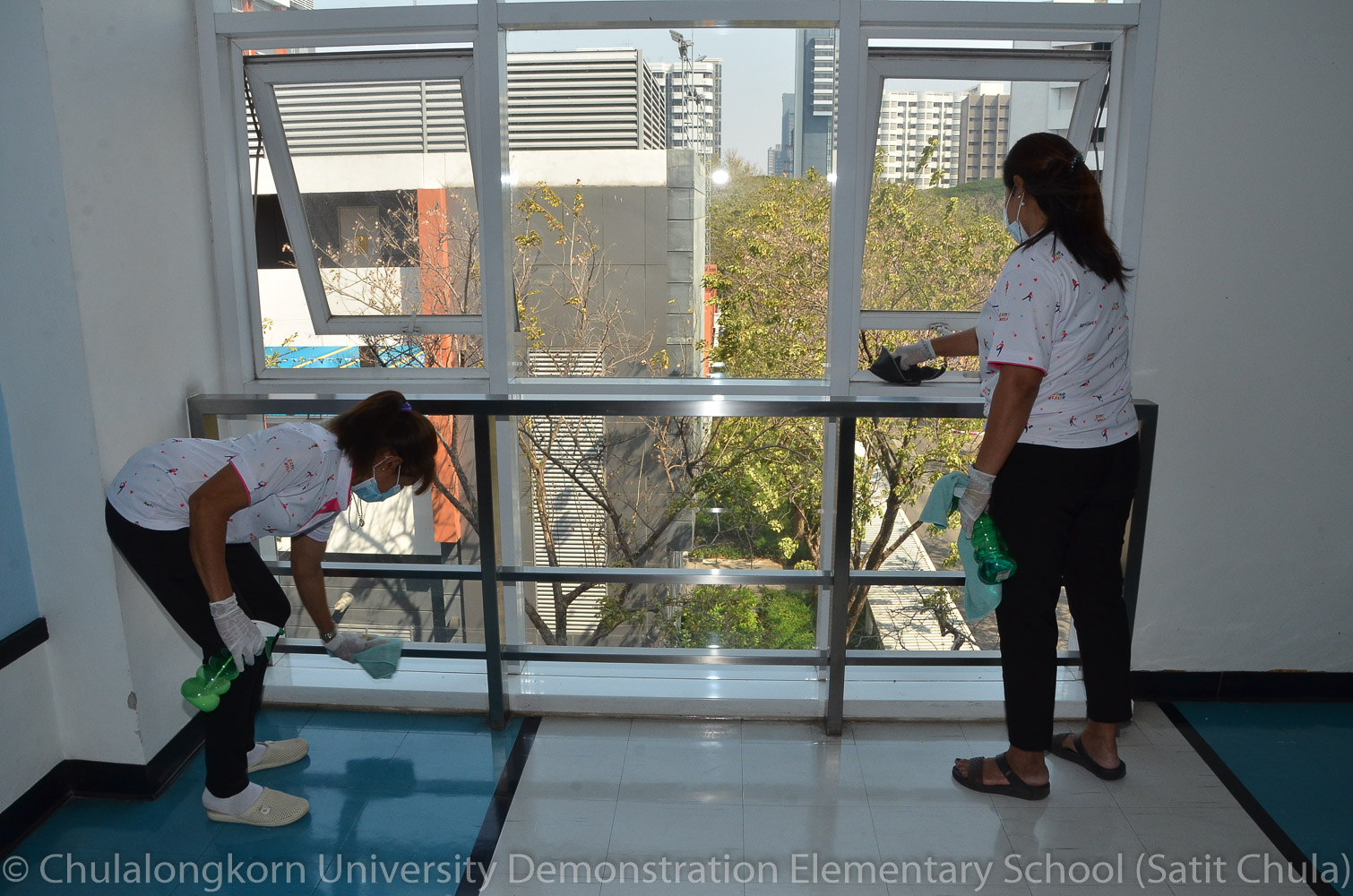 ทำความสะอาดโรงเรียนโดยหน่วยอาคารสถานที่ และหน่วยโภชนาการ