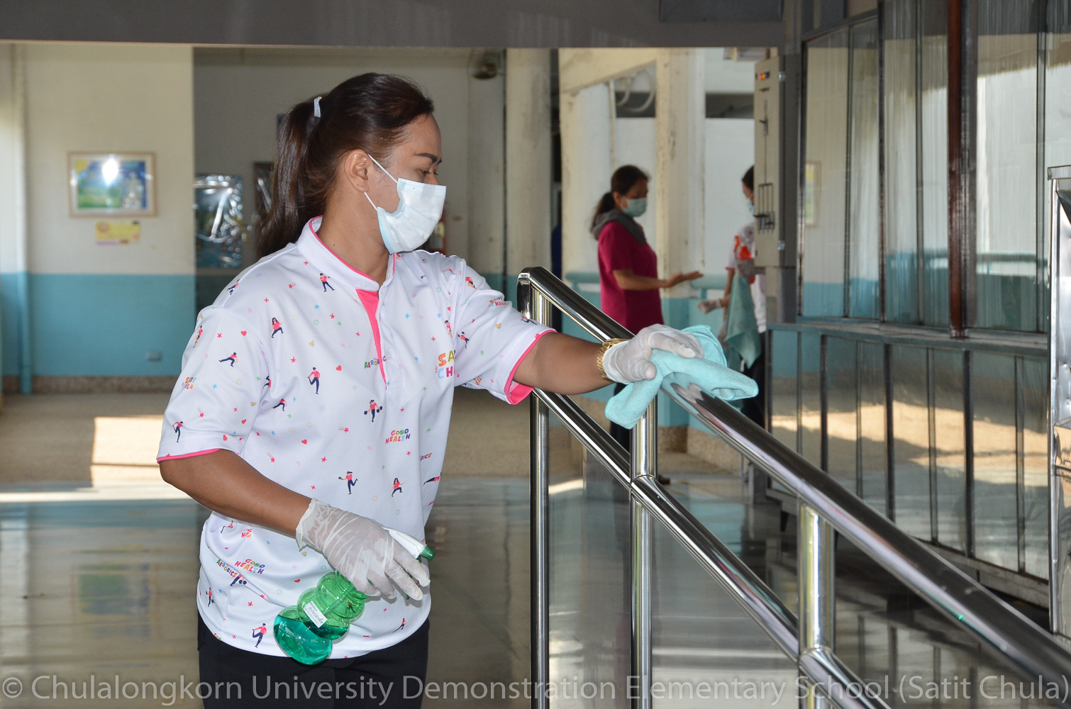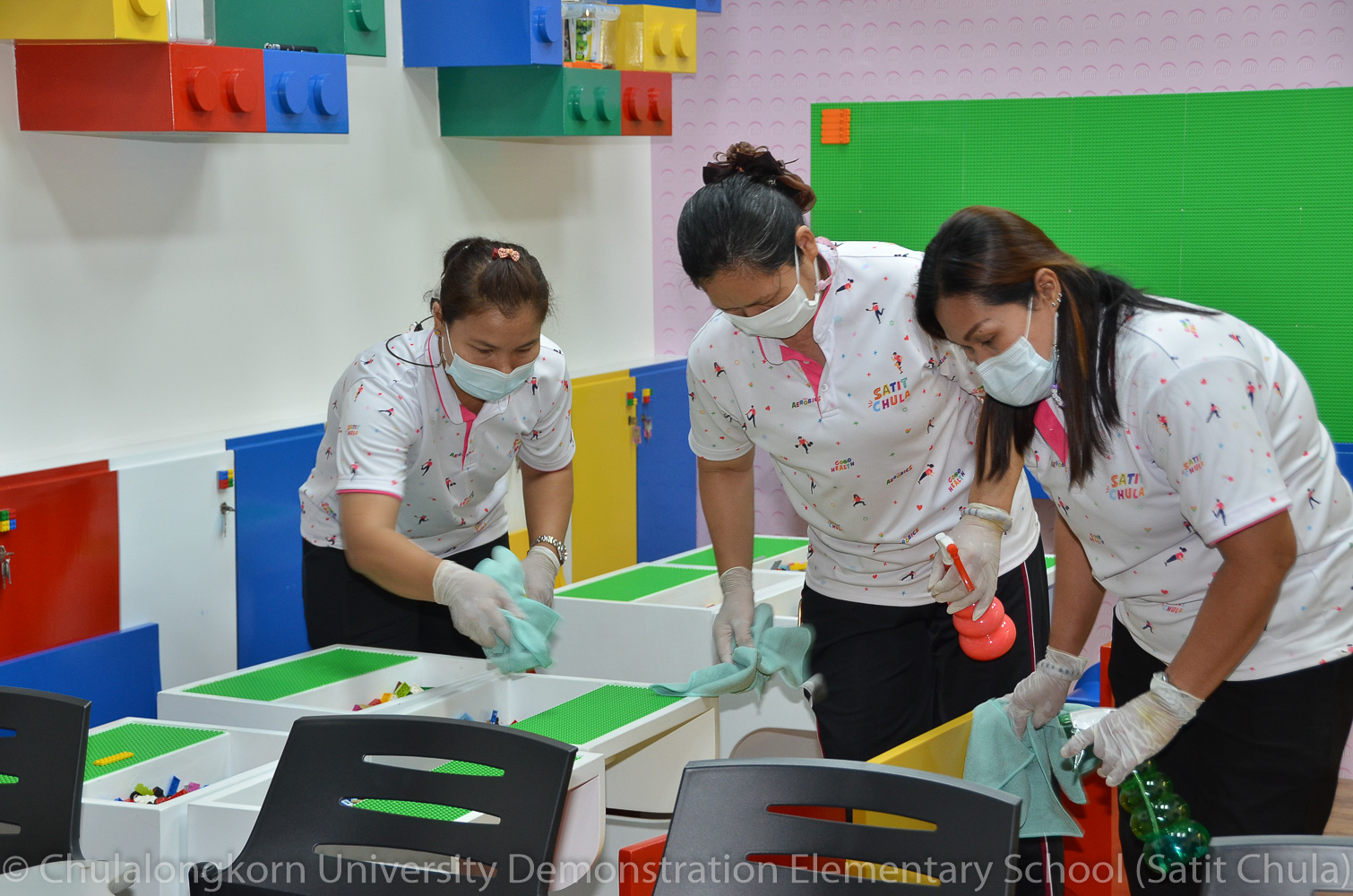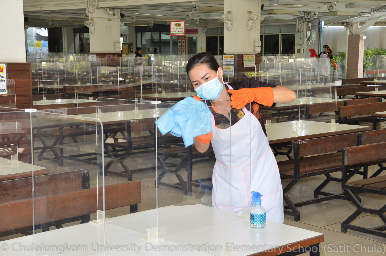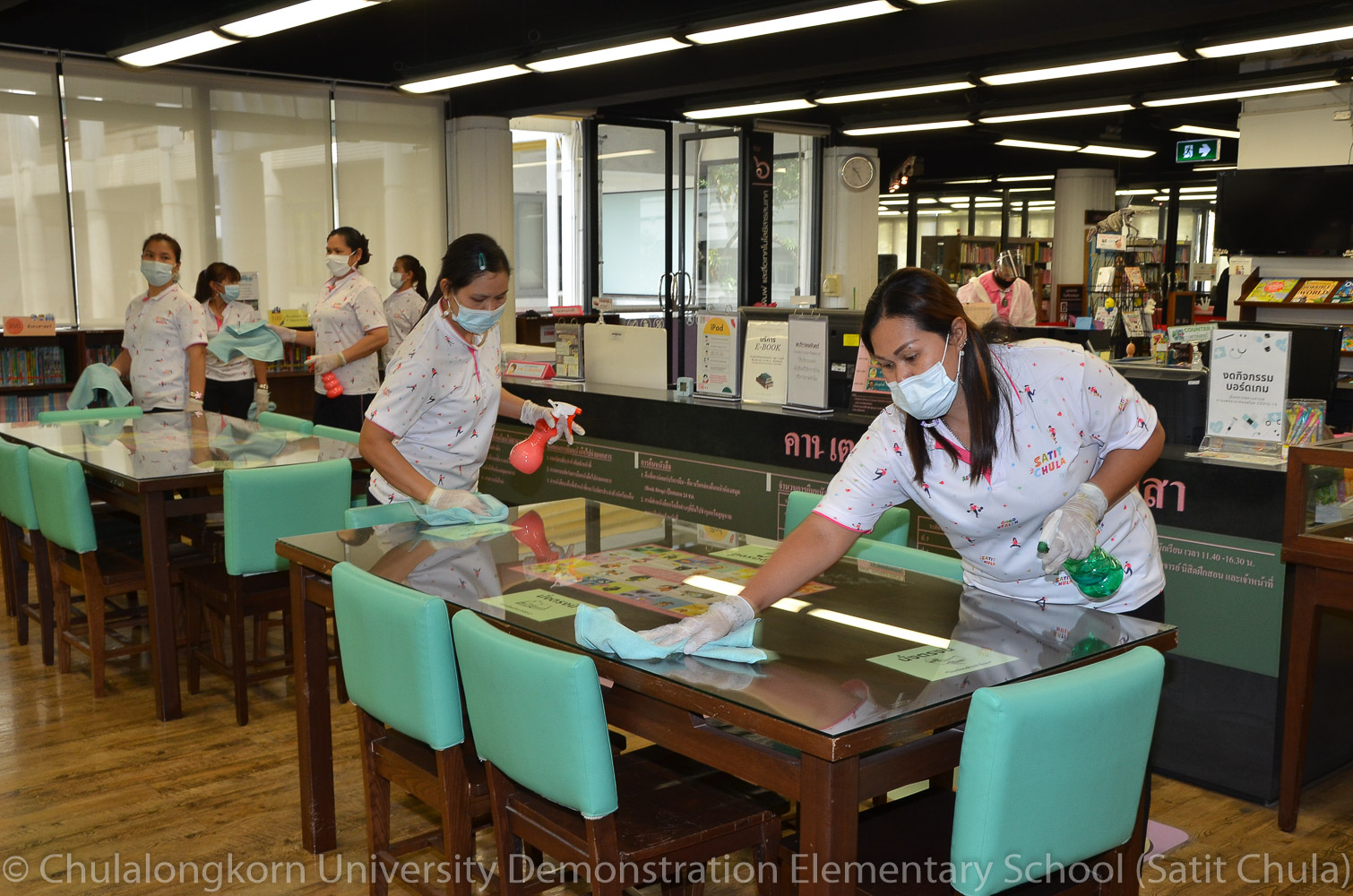 ทำความสะอาดโรงเรียนโดยหน่วยอาคารสถานที่ และหน่วยโภชนาการ