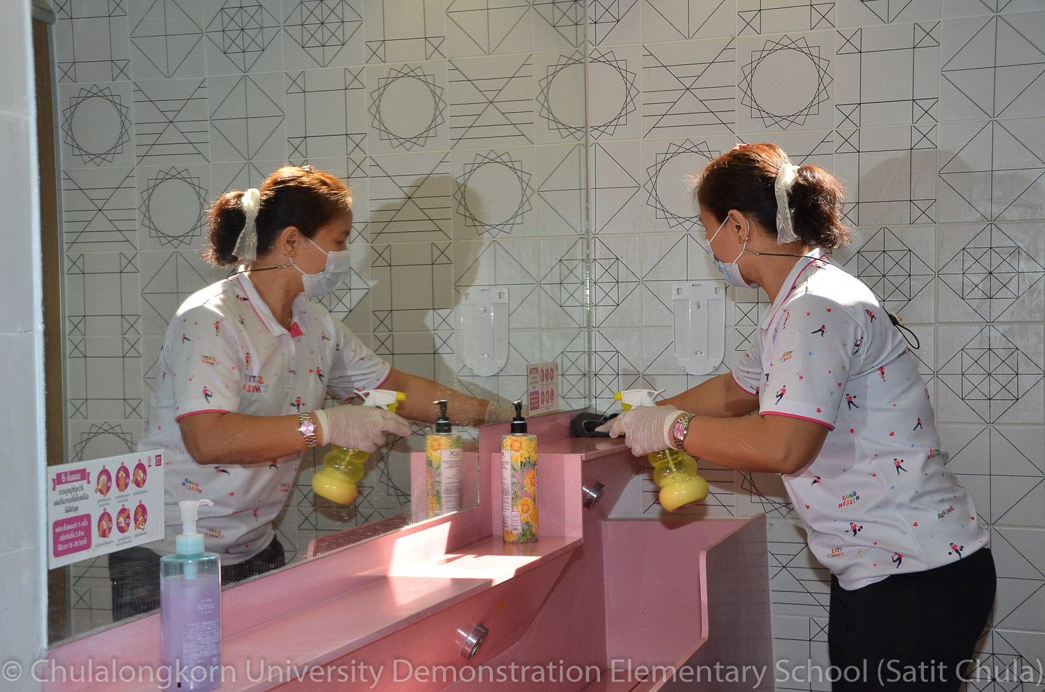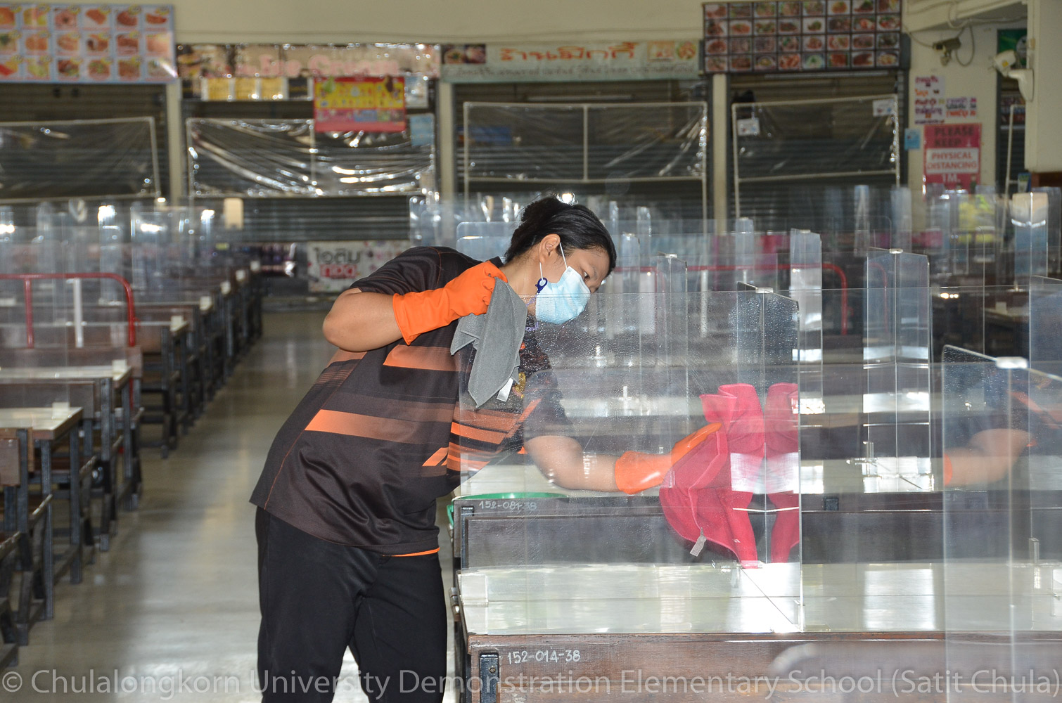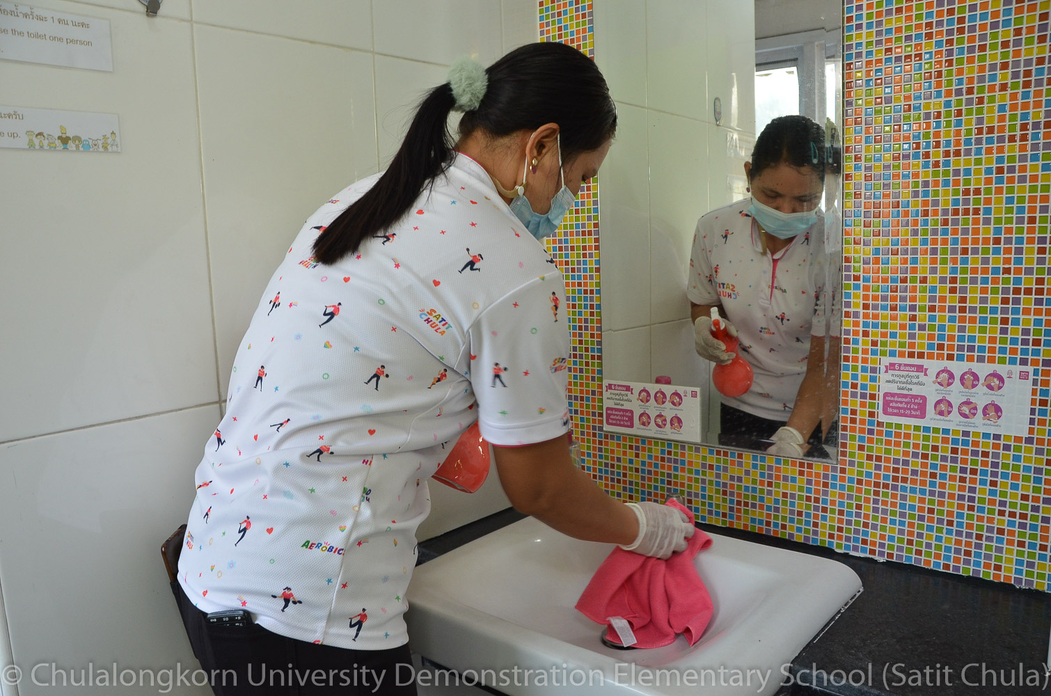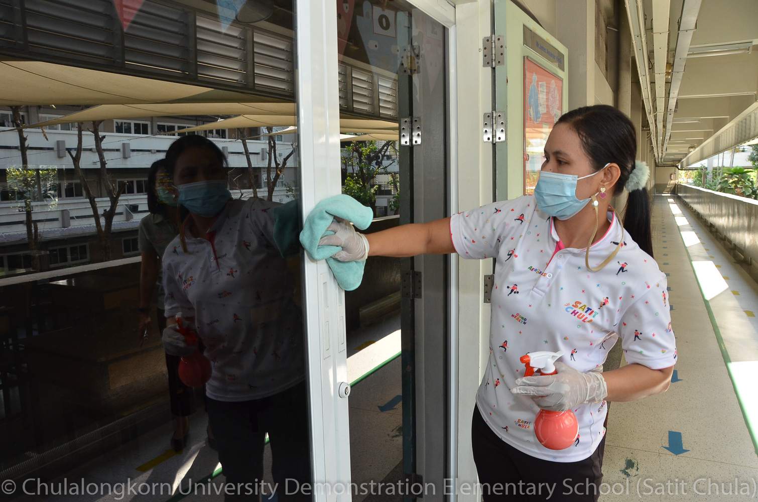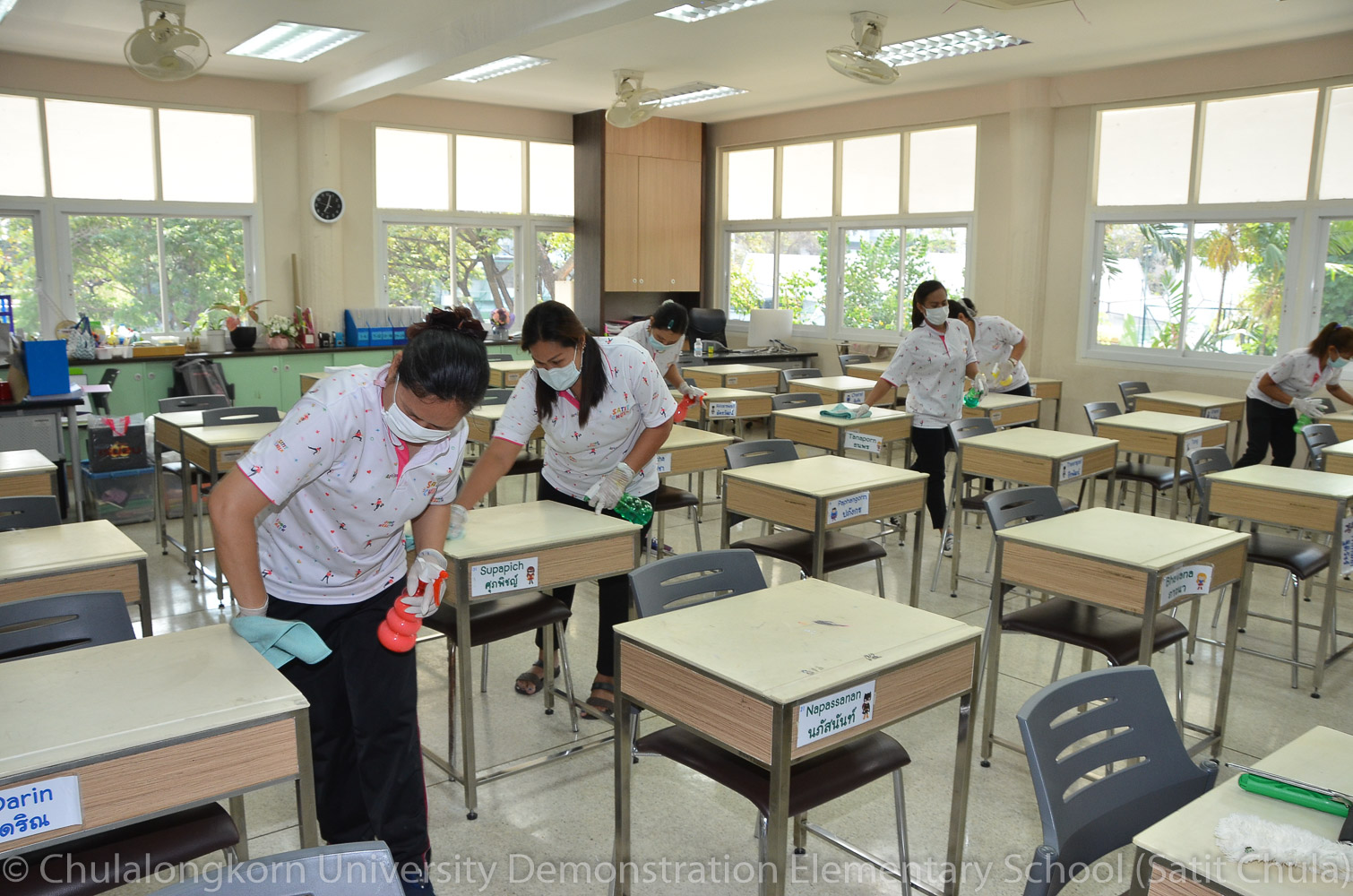 ทำความสะอาดโรงเรียนโดยหน่วยอาคารสถานที่ และหน่วยโภชนาการ