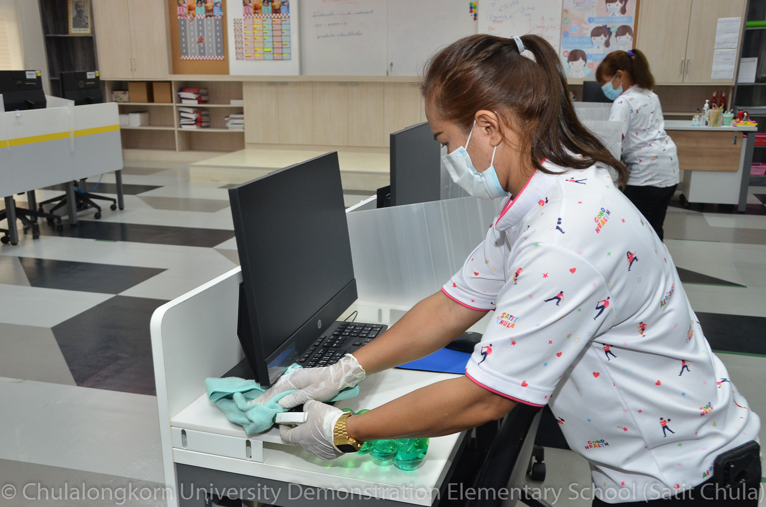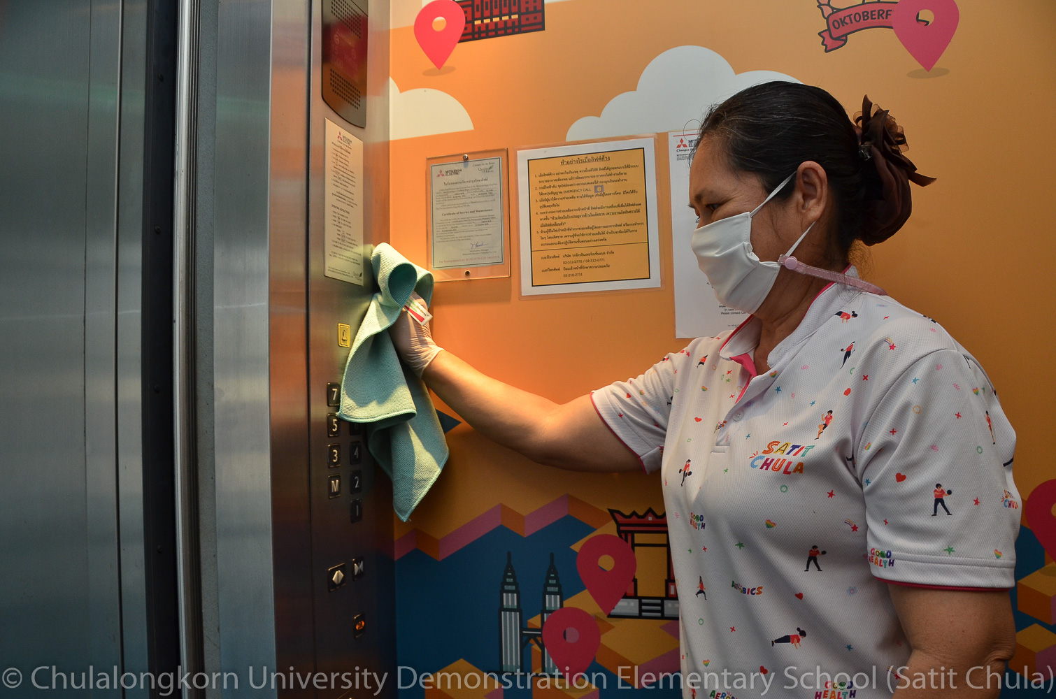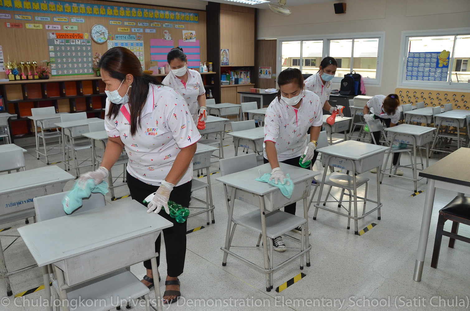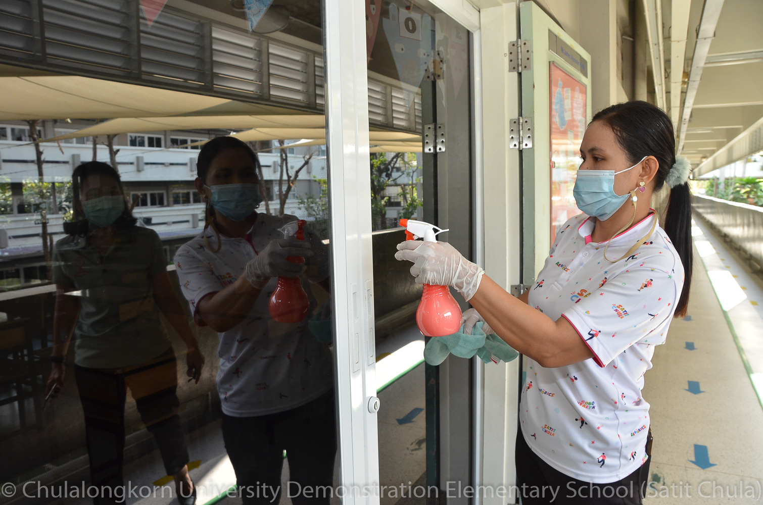 ทำความสะอาดโรงเรียนโดยหน่วยอาคารสถานที่ และหน่วยโภชนาการ
