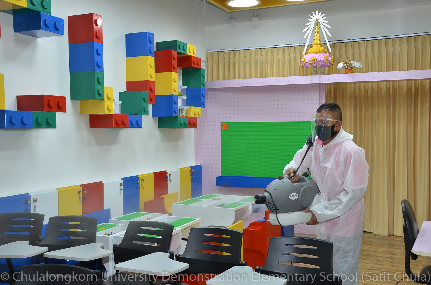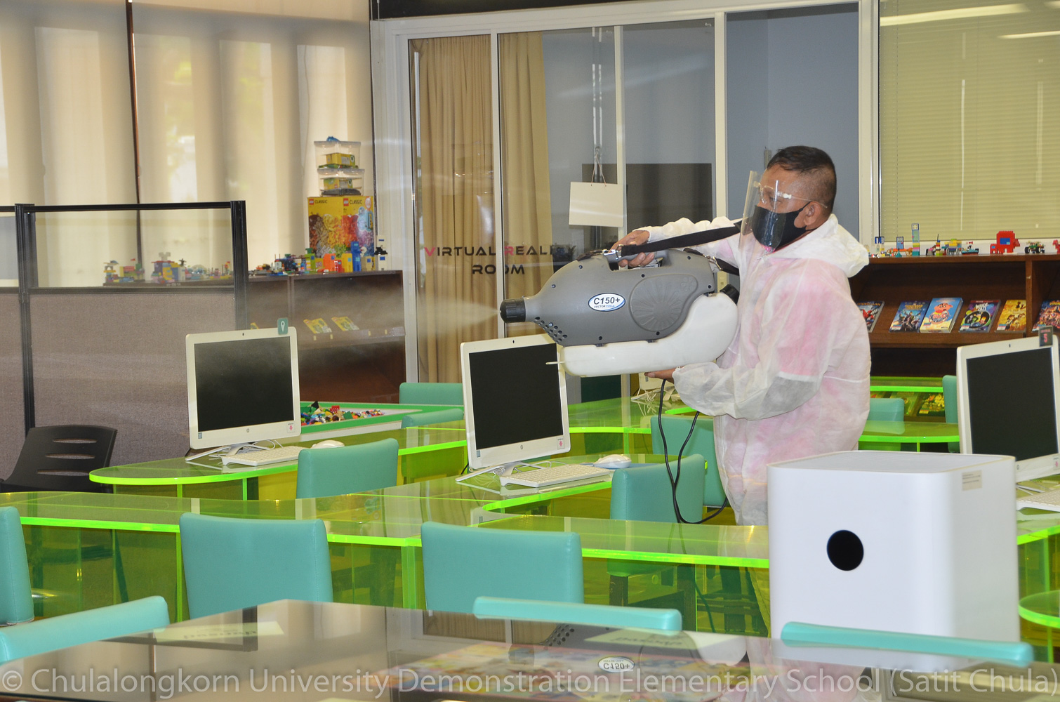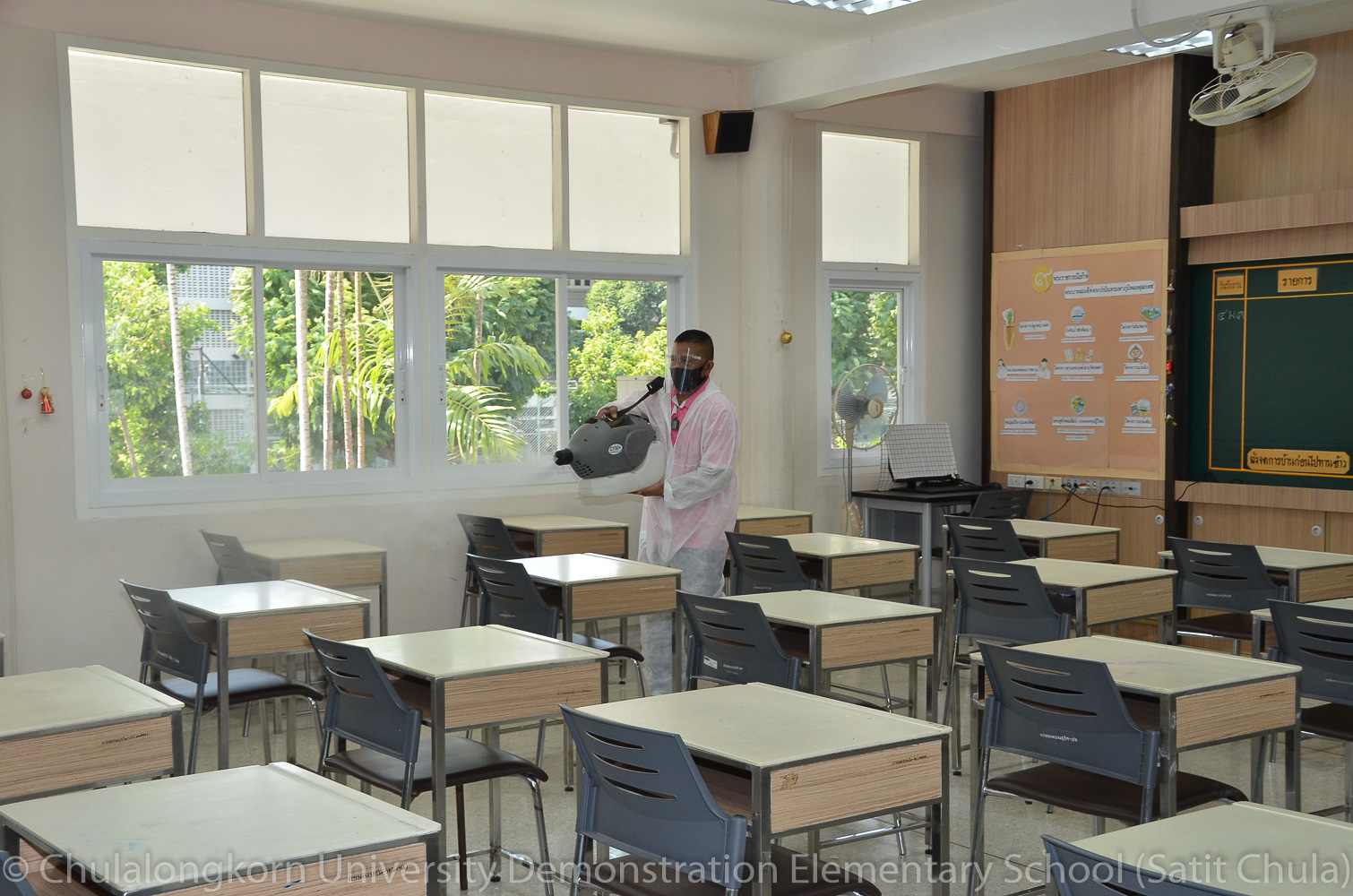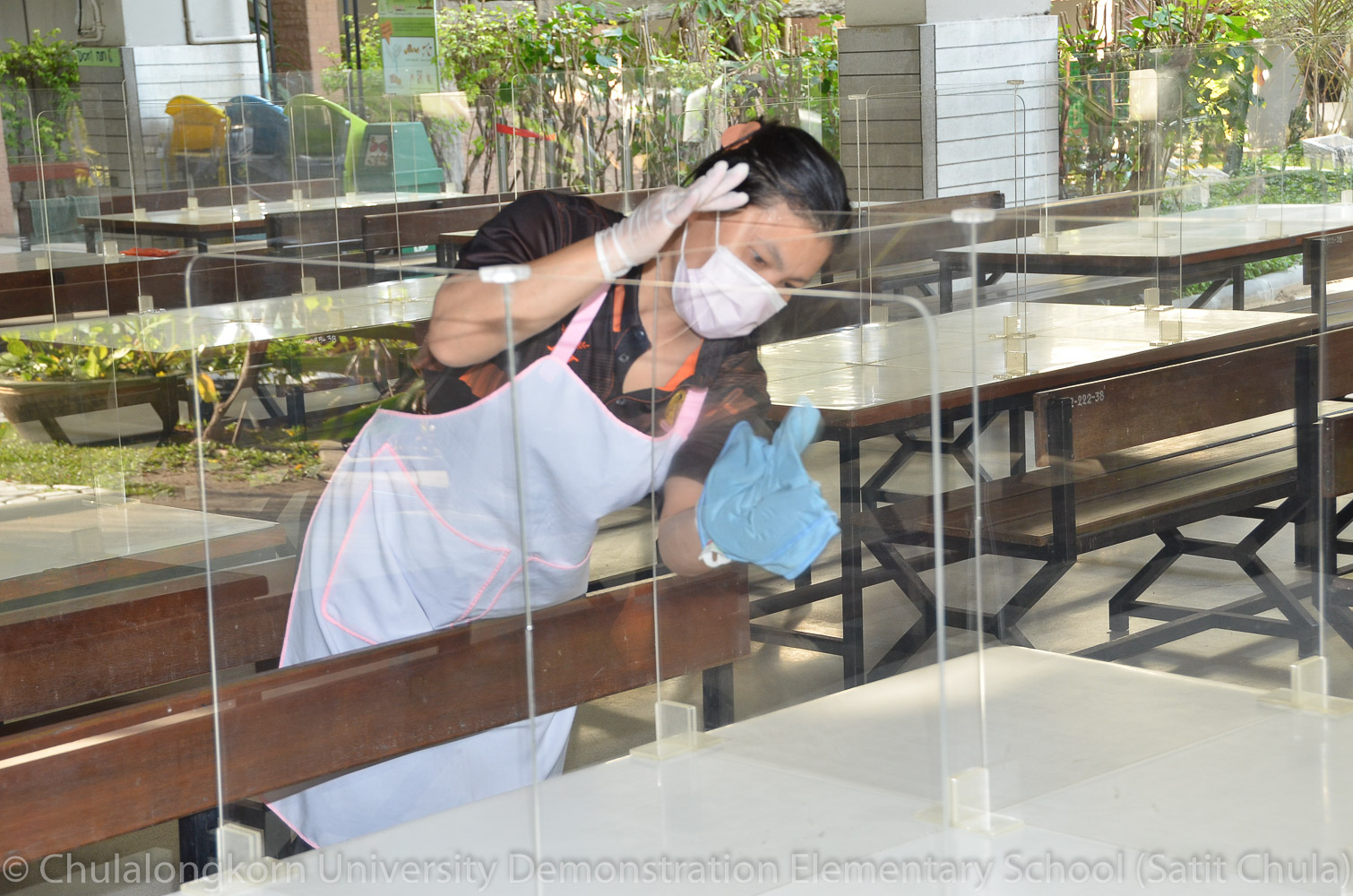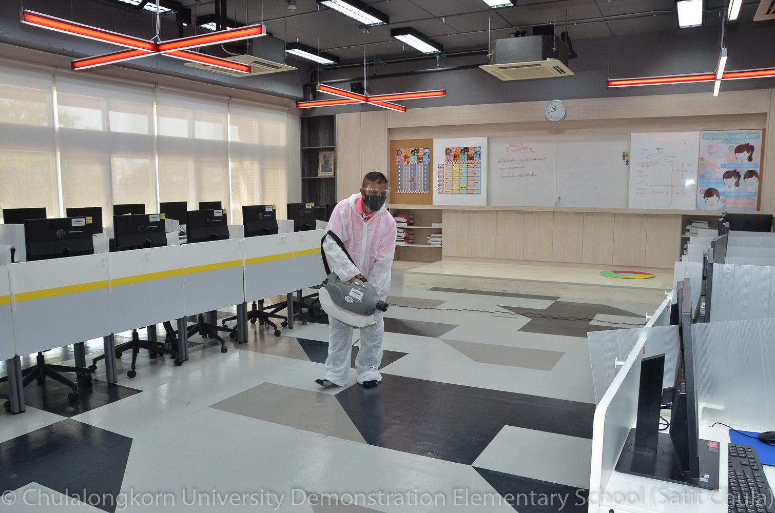 ทำความสะอาดโรงเรียนโดยหน่วยอาคารสถานที่ และหน่วยโภชนาการ