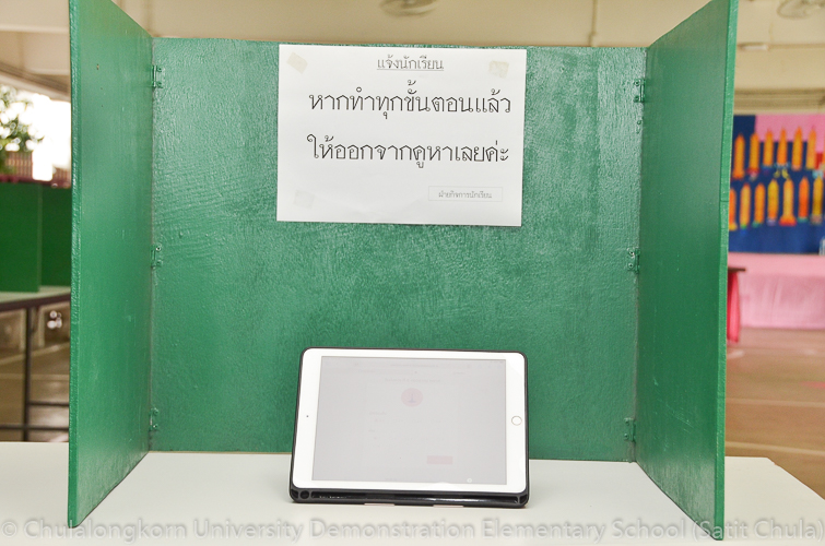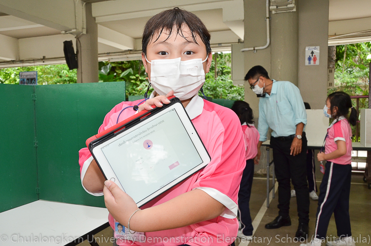 ทั้งนี้โรงเรียนสาธิตจุฬาฯ ฝ่ายประถม ขอขอบคุณ ผศ.ดร.สุกรี สินธุภิญโญ อาจารย์คณะวิศวกรรมศาสตร์ ในฐานะผู้ออกแบบแอพพลิเคชั่นการลงคะเเนนเสียงผ่านไอแพด (iPad) มา ณ โอกาสนี้ด้วย