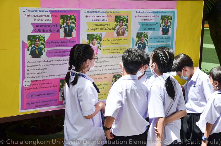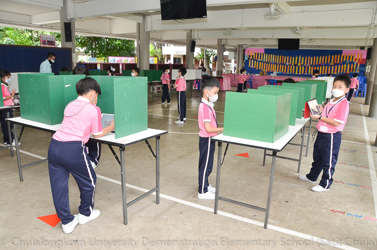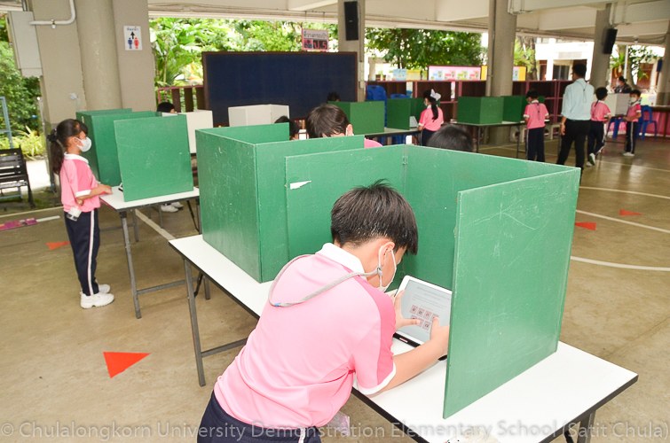 วันอังคารที่ 5 กรกฎาคม 2565 ฝ่ายกิจการนักเรียน โรงเรียนสาธิตจุฬาฯ ฝ่ายประถม จัดการเลือกตั้งคณะกรรมการสภานักเรียน ปีการศึกษา 2565 ด้วยรูปแบบการลงคะเเนนเสียงผ่านแอพพลิเคชั่นบนไอแพด (iPad)โดยนักเรียนที่สามารถมาใช้สิทธิ์เลือกตั้งได้ คือ นักเรียนระดับชั้นประถมศึกษาปีที่ 3 – 6