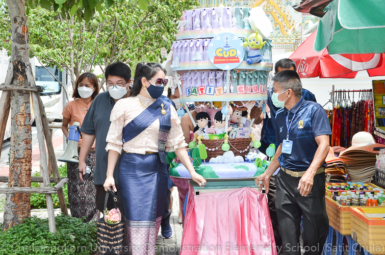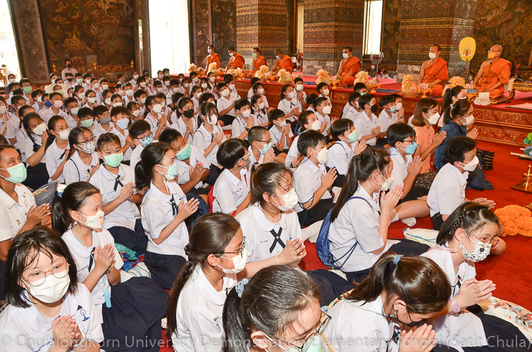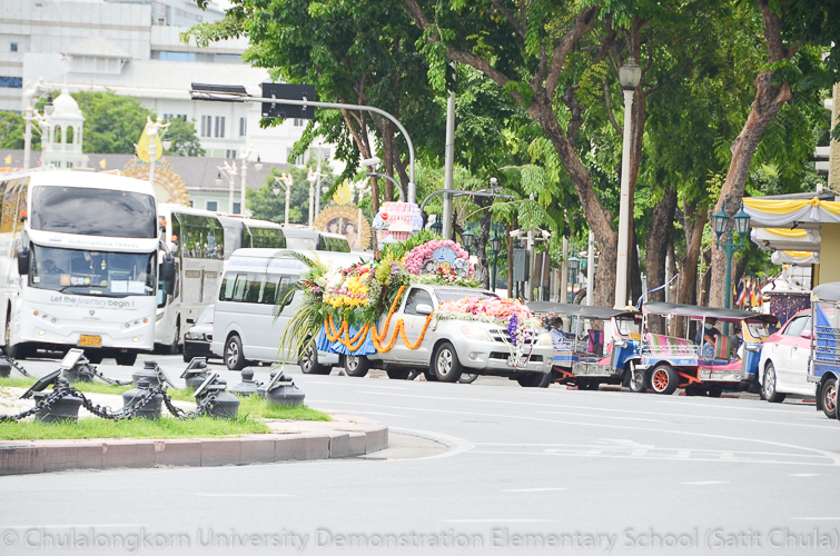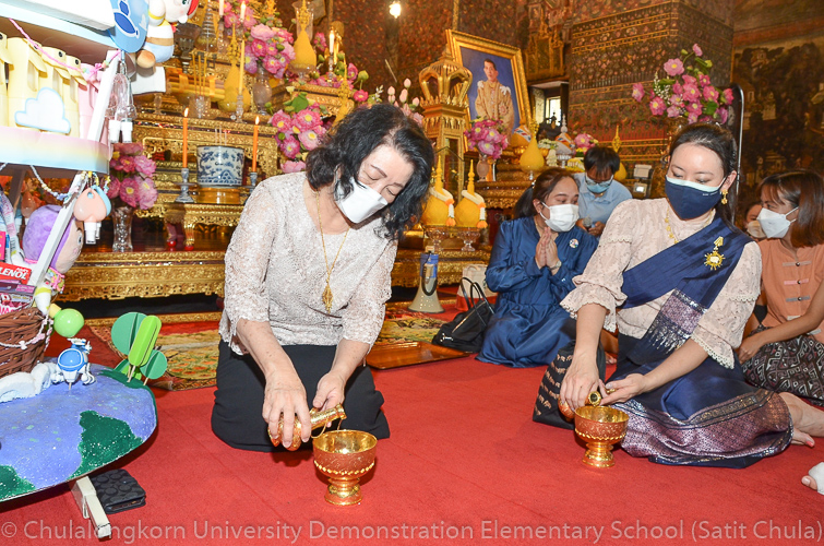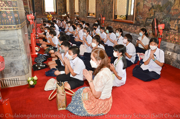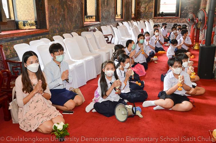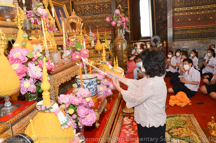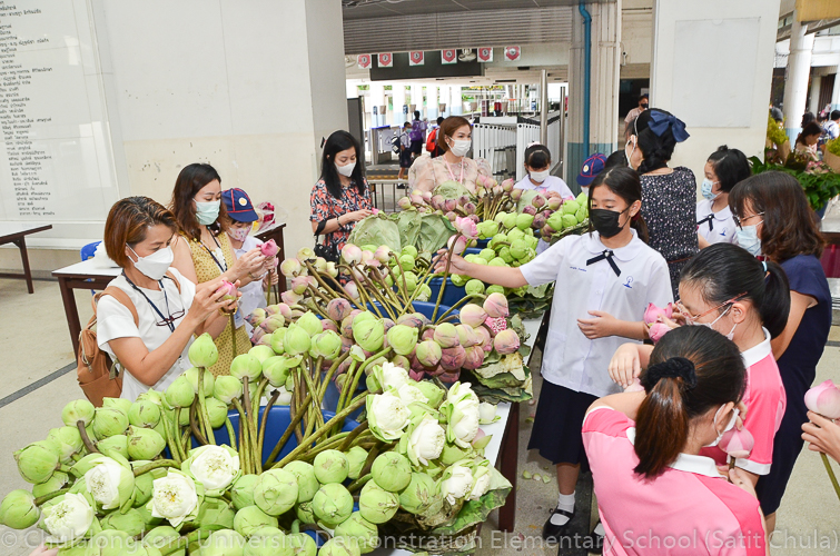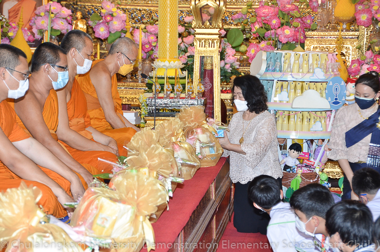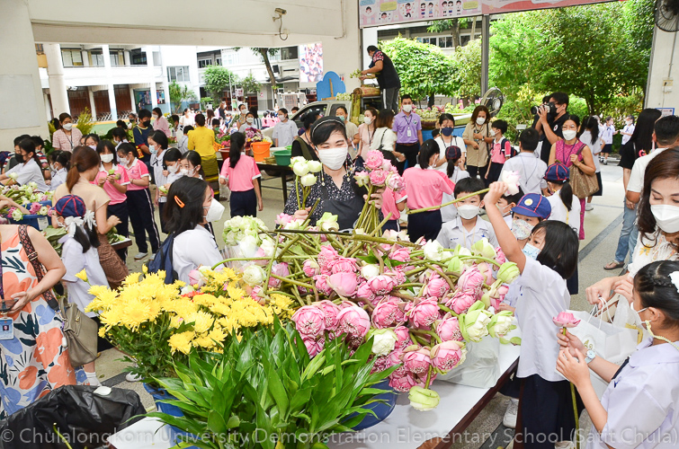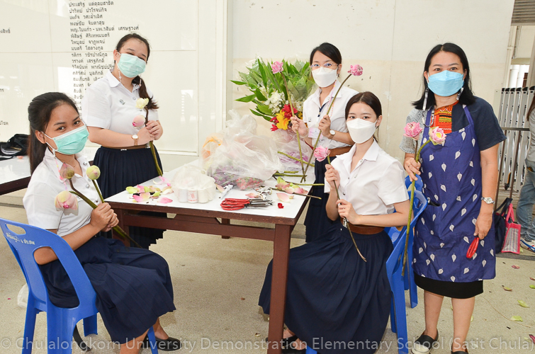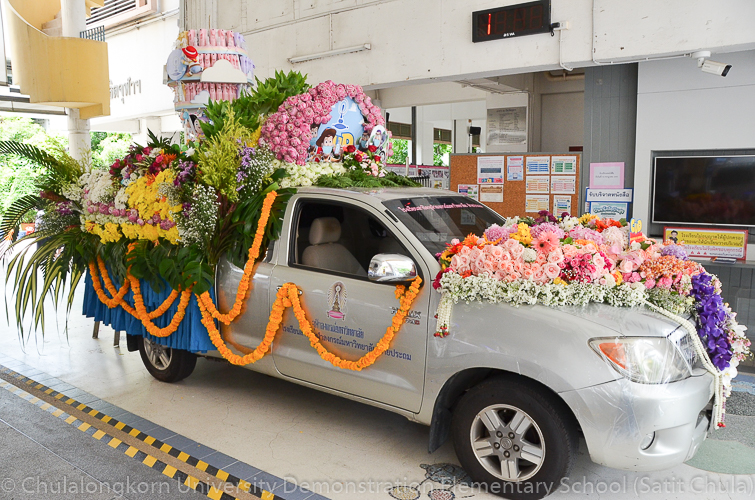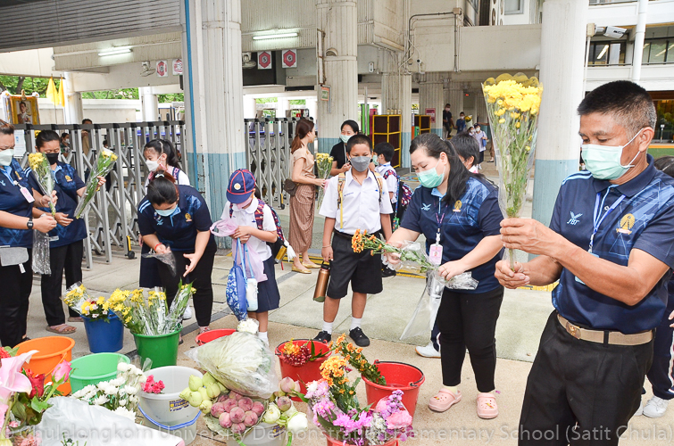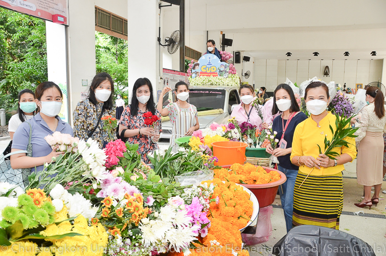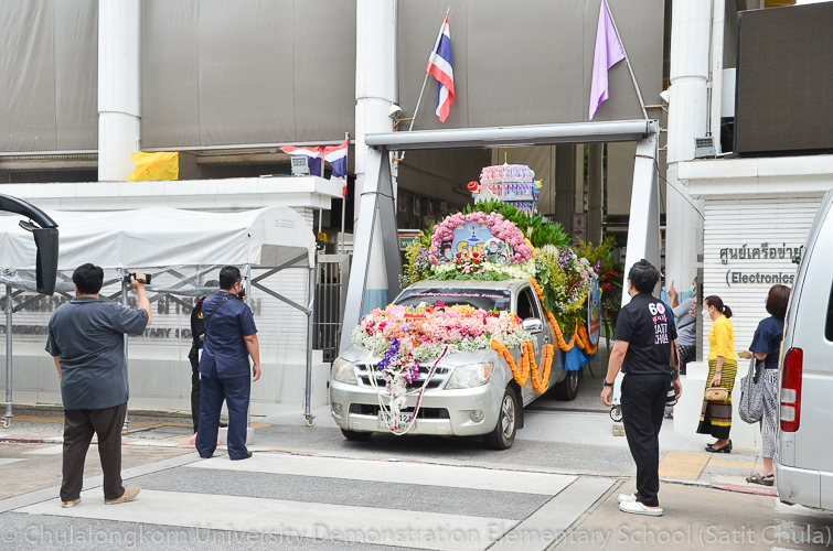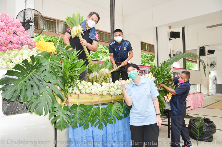 วันศุกร์ที่ 8 กรกฎาคม 2565 ณ บริเวณชั้นล่างอาคาร ๕๐ ปี สาธิตจุฬาฯ คณาจารย์ บุคลากร นักเรียน นิสิต และผู้ปกครอง โรงเรียนสาธิตจุฬาลงกรณ์มหาวิทยาลัย ฝ่ายประถม นำวัสดุธรรมชาติ ดอกไม้สดหลากสีสัน และใบไม้นานาพันธุ์ มาร่วมบริจาคตกแต่งรถแห่เทียนพรรษาให้มีสีสันสวยงามตระการตา เพื่อนำไปถวายเทียนจำนำพรรษา ณ วัดพระเชตุพนวิมลมังคลารามราชวรมหาวิหาร (วัดโพธิ์) ก่อนถึงวันเข้าพรรษาซึ่งตรงกับวันพฤหัสบดีที่ 14 กรกฎาคม 2565 ที่กำลังจะมาถึง