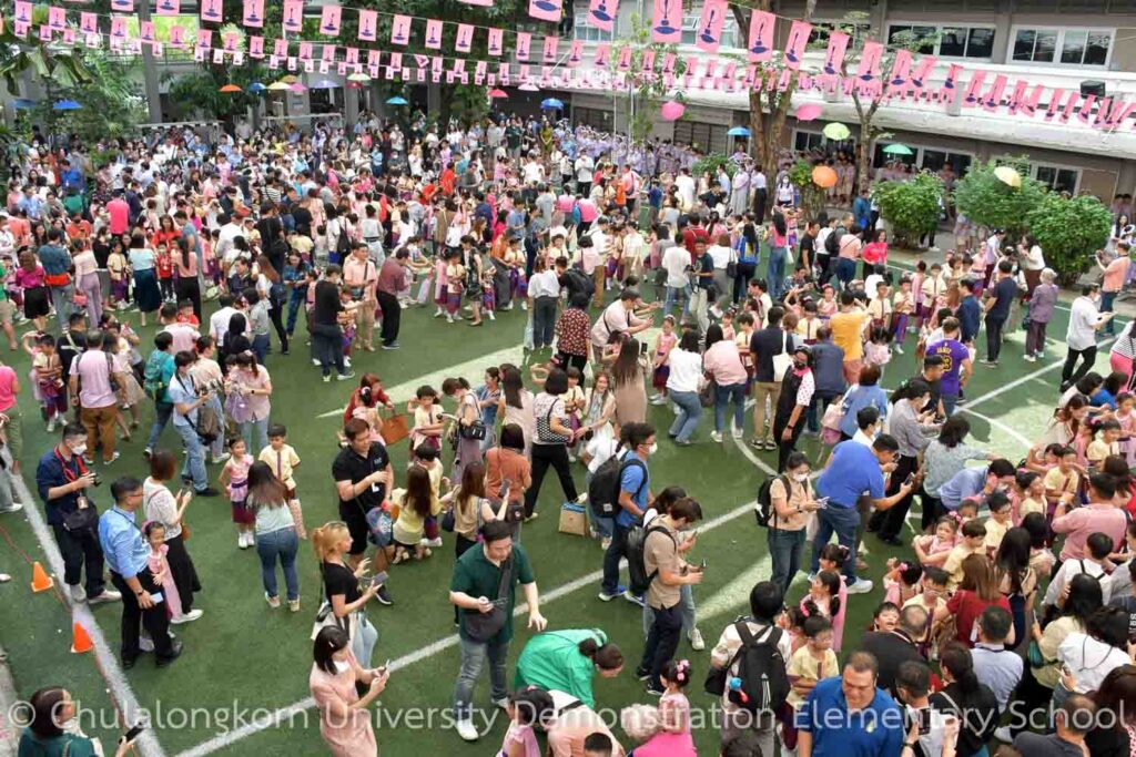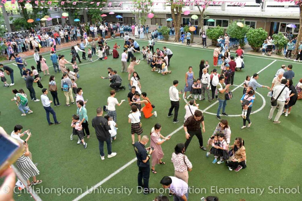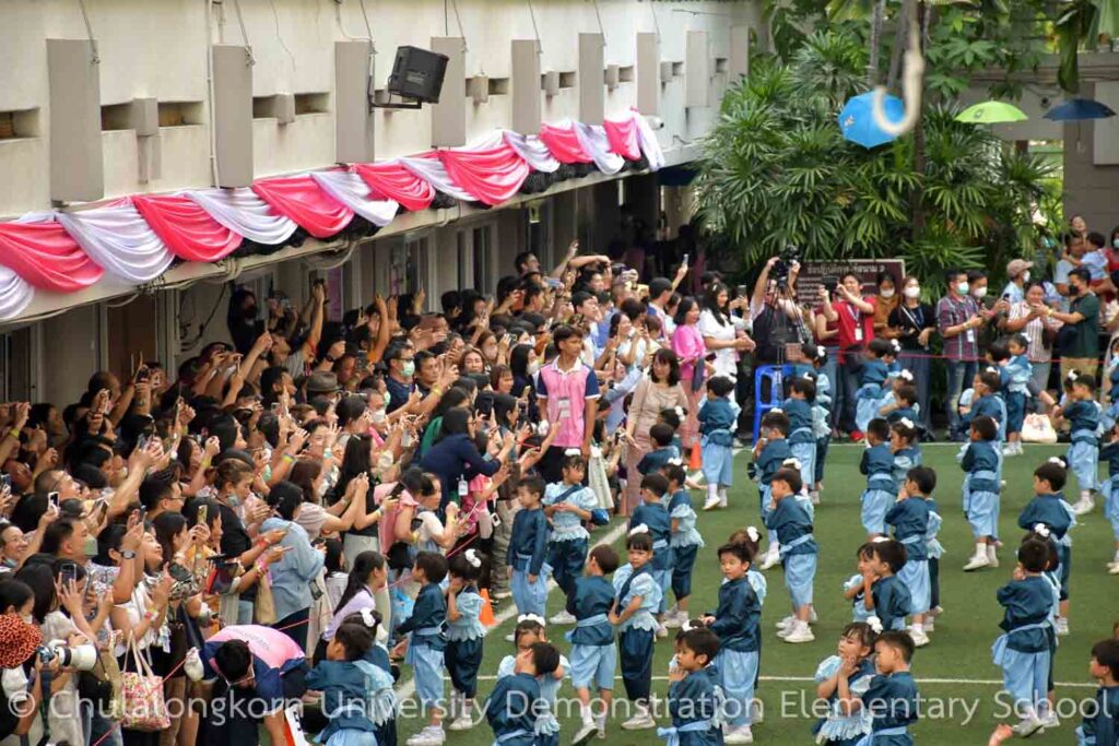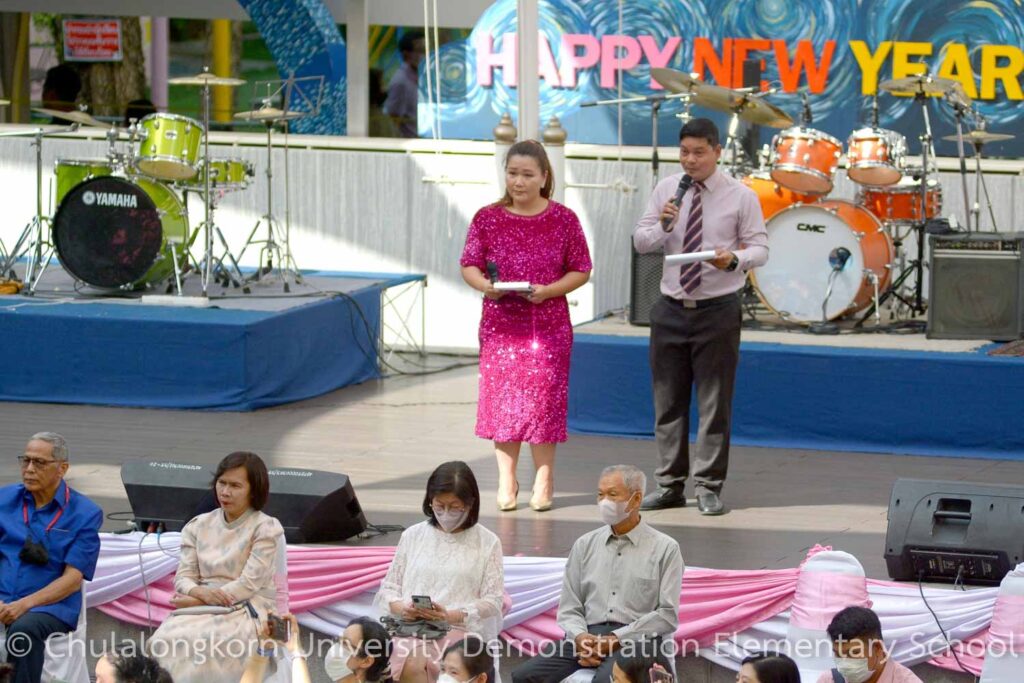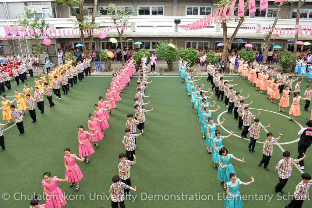 2.ภาพการแสดงรายการที่ 2 ของนักเรียนระดับชั้นประถมศึกษาปีที่ 1 ชื่อชุดการแสดง “สาธิตจุฬาฯ หัวใจไทย” กิจกรรมต้อนรับปีใหม่ 2567 “สาธิตจุฬาฯ สุขี ฤกษ์ดีปีมะโรง”
