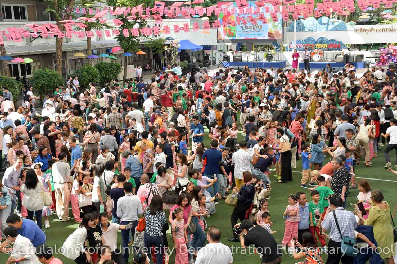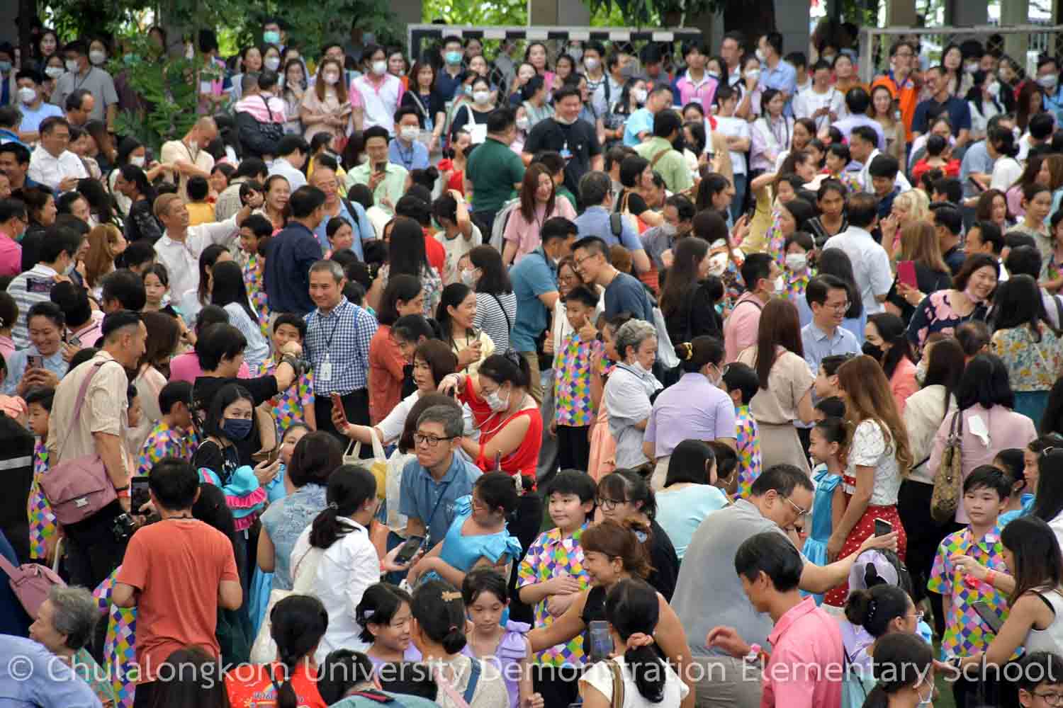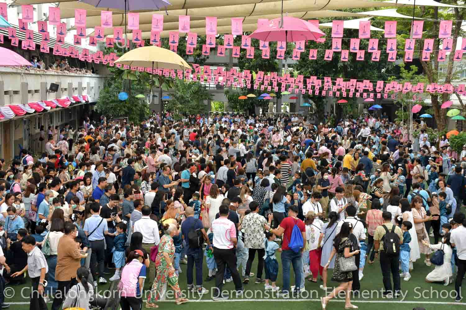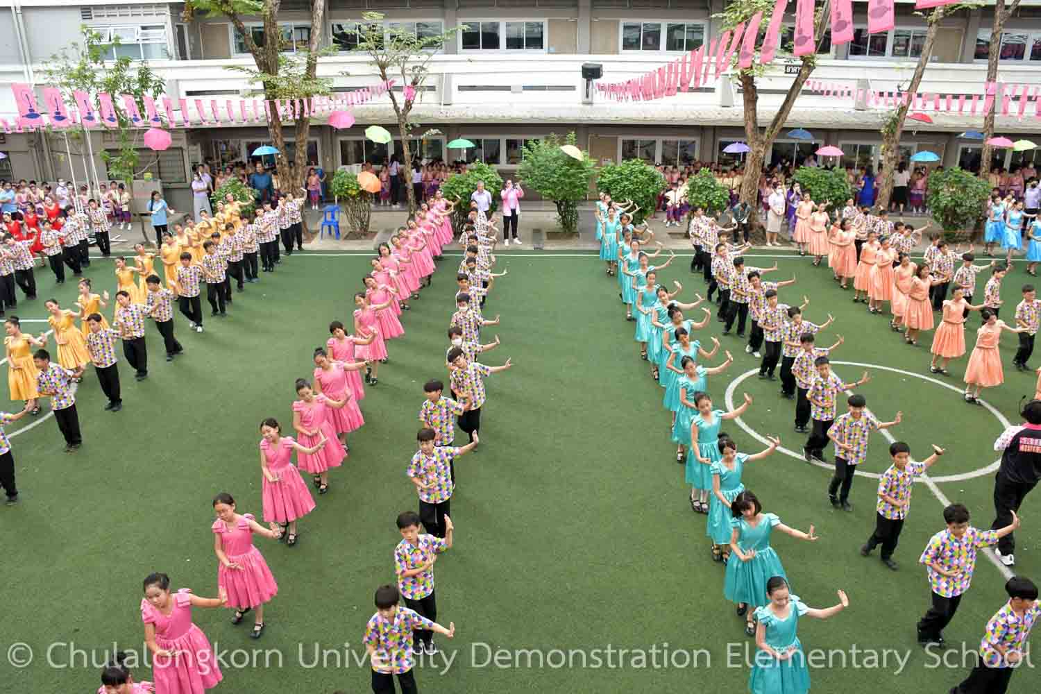 2.ภาพการแสดงรายการที่ 2 ของนักเรียนระดับชั้นประถมศึกษาปีที่ 1 ชื่อชุดการแสดง “สาธิตจุฬาฯ หัวใจไทย” กิจกรรมต้อนรับปีใหม่ 2567 “สาธิตจุฬาฯ สุขี ฤกษ์ดีปีมะโรง”