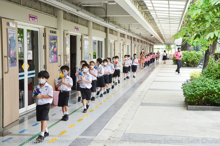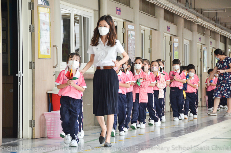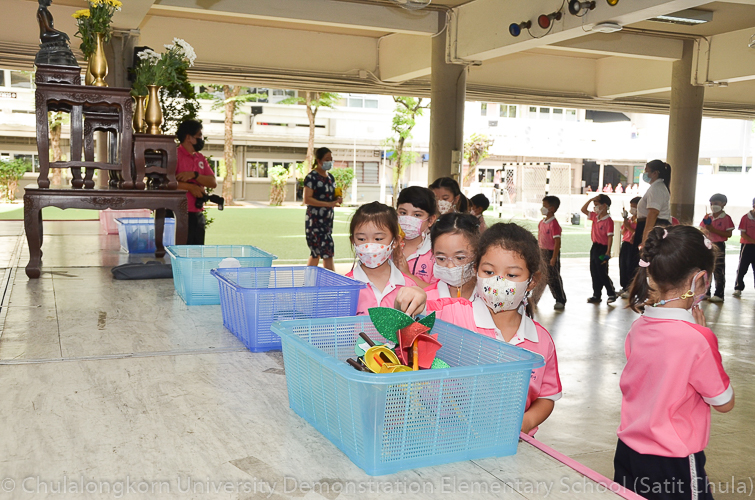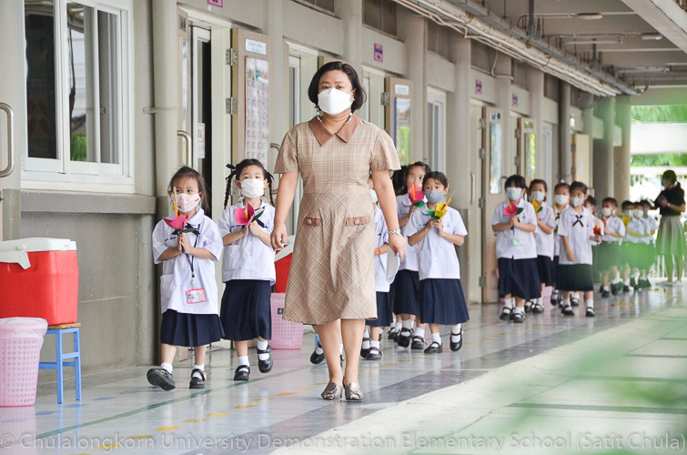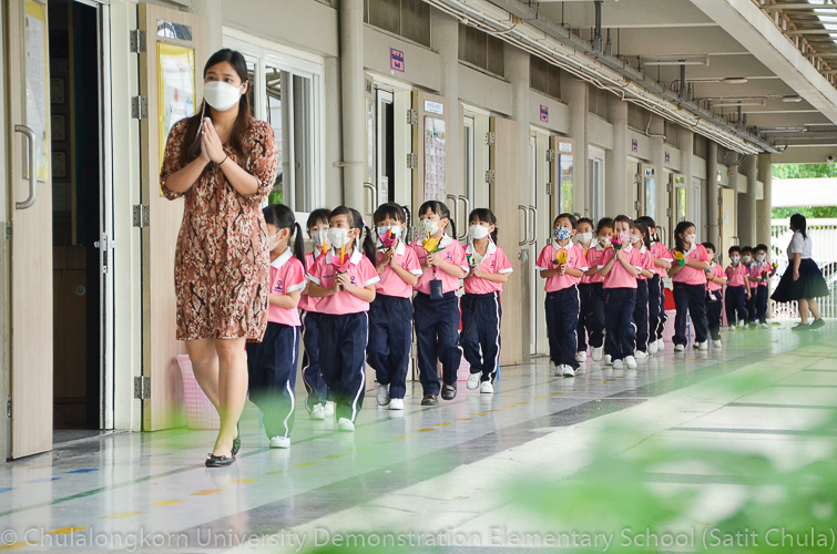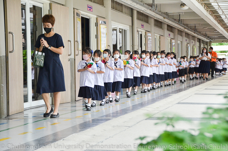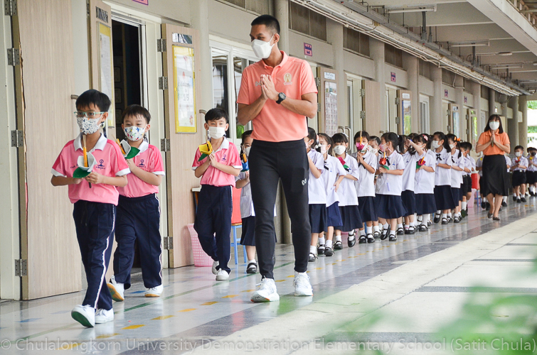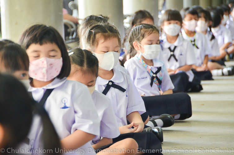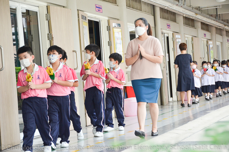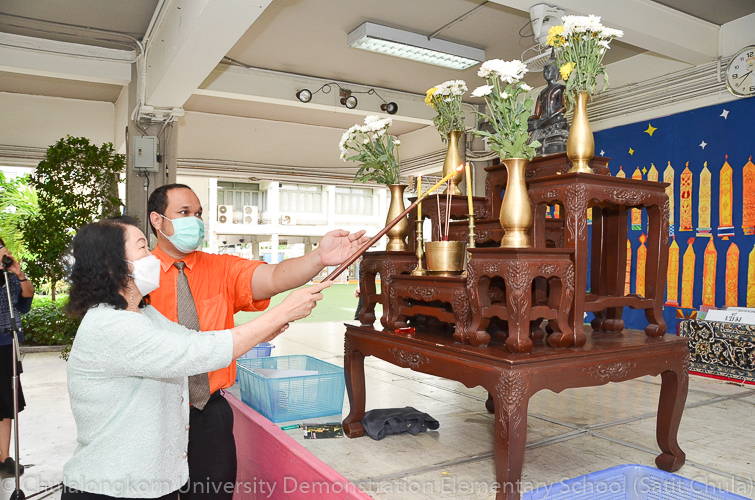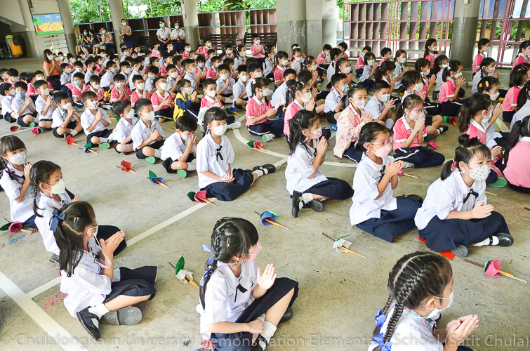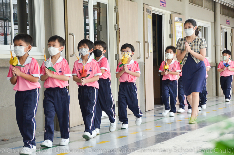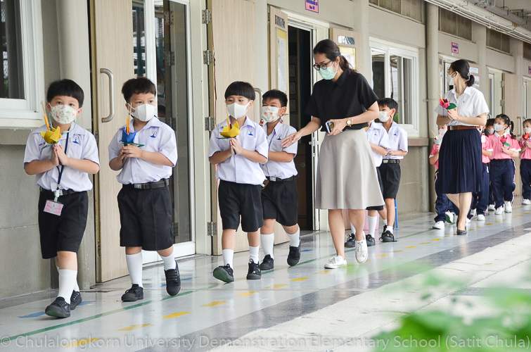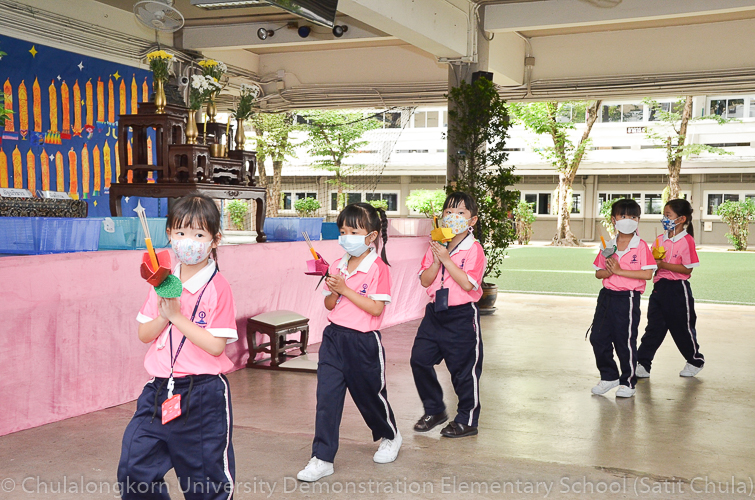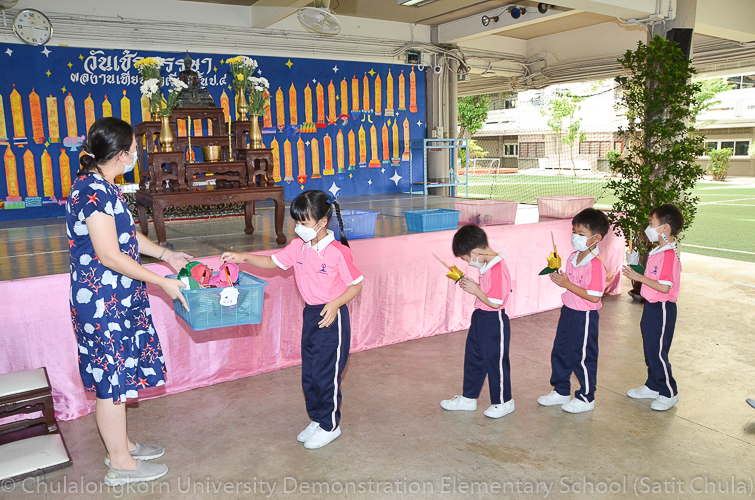 วันพฤหัสบดีที่ 7 กรกฎาคม 2565 โรงเรียนสาธิตจุฬาลงกรณ์มหาวิทยาลัย ฝ่ายประถม จัดกิจกรรม “การเวียนเทียน” เนื่องในโอกาสเทศกาลวันอาสาฬหบูชา ซึ่งตรงกับวันพุธที่ 13 กรกฎาคม 2565 ที่กำลังจะมาถึง โรงเรียนจัดให้นักเรียนและคณาจารย์ระดับชั้นประถมศึกษาปีที่ 1 ทำการเดินเวียนเทียนบริเวณโดยรอบโรงเรียน แทนการไปร่วมกิจกรรมทางศาสนาที่วัด โดยระหว่างเดินนั้นนักเรียนถือดอกไม้ประดิษฐ์ ธูป เทียน พร้อมกับสำรวมจิตใจให้สงบไปด้วย เพื่อน้อมรำลึกถึงพระพุทธ พระธรรม พระสงฆ์ และเพื่อสืบทอดรักษาวัฒนธรรมประเพณีอันดีงามของชาวพุทธที่นิยมทำกันในวันสำคัญทางพระพุทธศาสนา