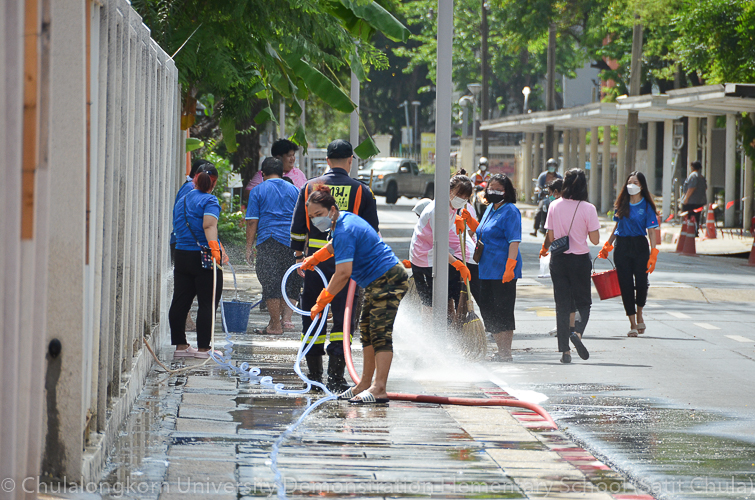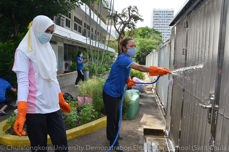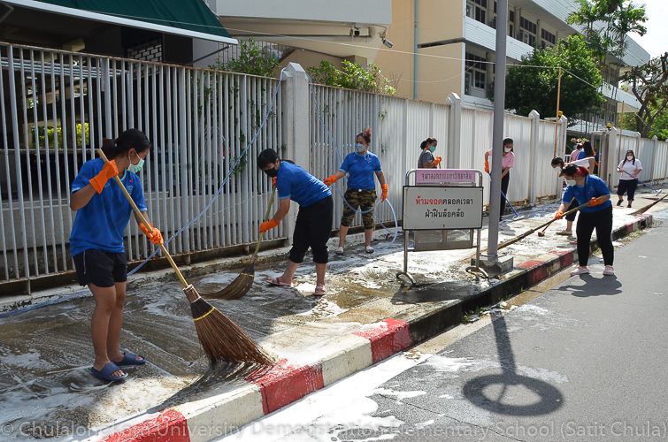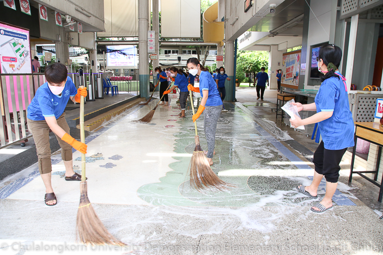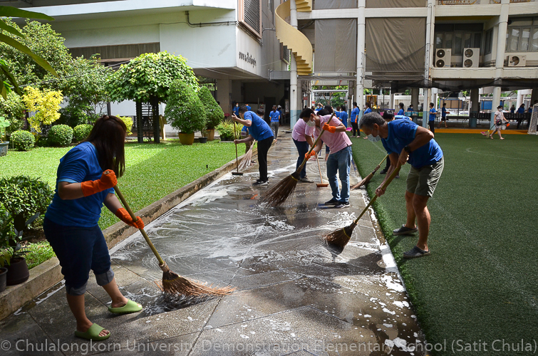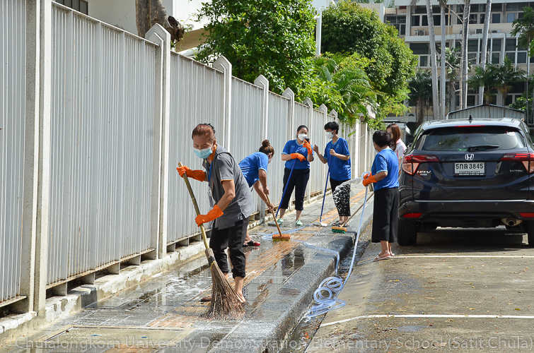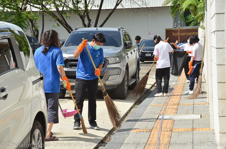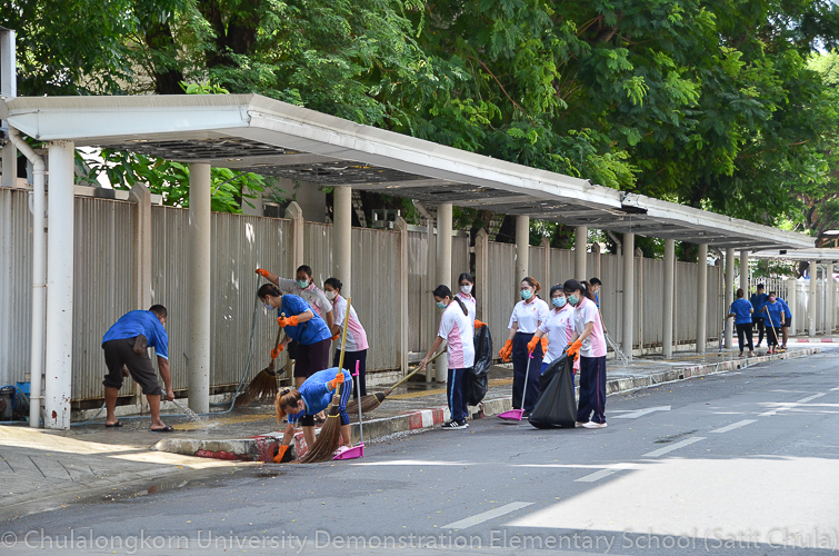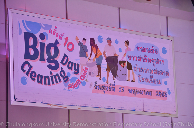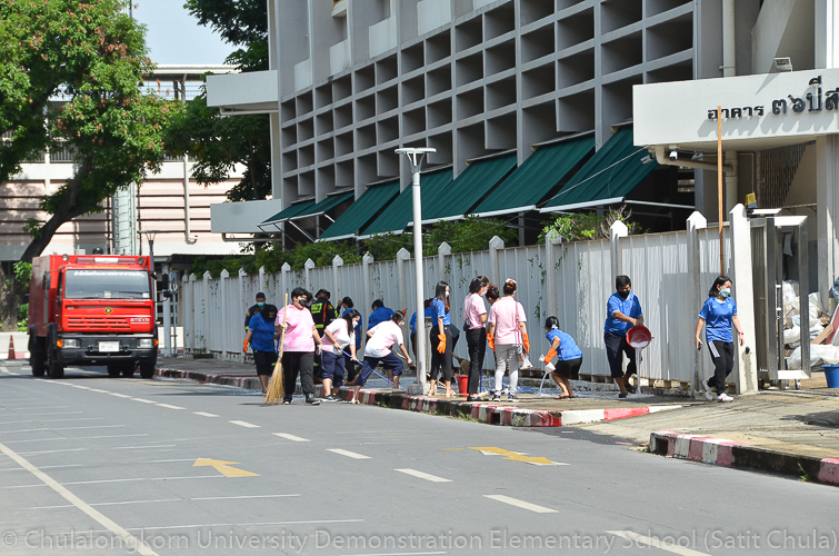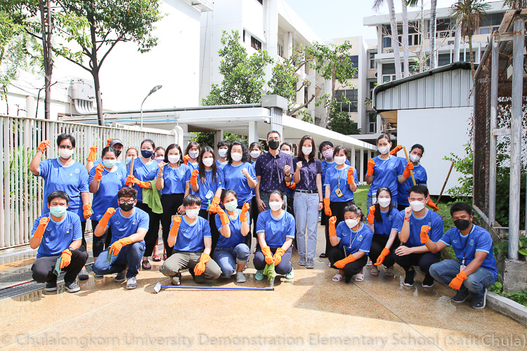 วันศุกร์ที่ 27 พฤษภาคม 2565 โรงเรียนสาธิตจุฬาลงกรณ์มหาวิทยาลัย ฝ่ายประถม จัดกิจกรรมรวมพลังชาวสาธิตจุฬาฯ ทำความสะอาดโรงเรียน ครั้งที่ 10 “Big Cleaning Day @ Satit Chula” คณะผู้บริหาร คณาจารย์ บุคลากร ผู้ปกครอง พร้อมทั้งสมาคมผู้ปกครองและครูโรงเรียนสาธิตจุฬาลงกรณ์มหาวิทยาลัย และสมาคมนักเรียนเก่าสาธิตจุฬาลงกรณ์มหาวิทยาลัย ทุกฝ่ายต่างร่วมมือร่วมใจกันทำความสะอาดคนละไม้คนละมืออย่างคึกคักเข้มแข็ง เต็มไปร่วมแรงกายและแรงใจที่จะช่วยกันปรับพื้นที่ของโรงเรียนให้กลับมาสะอาดเรียบร้อย พร้อมที่จะอำนวยความสะดวกให้กับนักเรียนและผู้ปกครองทุกคนในการเปิดเรียนภาคต้น ปีการศึกษา 2565 นี้ ทั้งนี้ทางโรงเรียนขอขอบพระคุณสมาคมผู้ปกครองและครูโรงเรียนสาธิตจุฬาฯ ในการสนับสนุนอุปกรณ์ทำความสะอาด และขอขอบคุณสมาคมนักเรียนเก่าสาธิตจุฬาฯ ในการสนับสนุนรถฉีดน้ำความสะอาดเพื่ออำนวยความสะดวก พร้อมทั้งอาหารและเครื่องดื่มในกับทุกท่าน