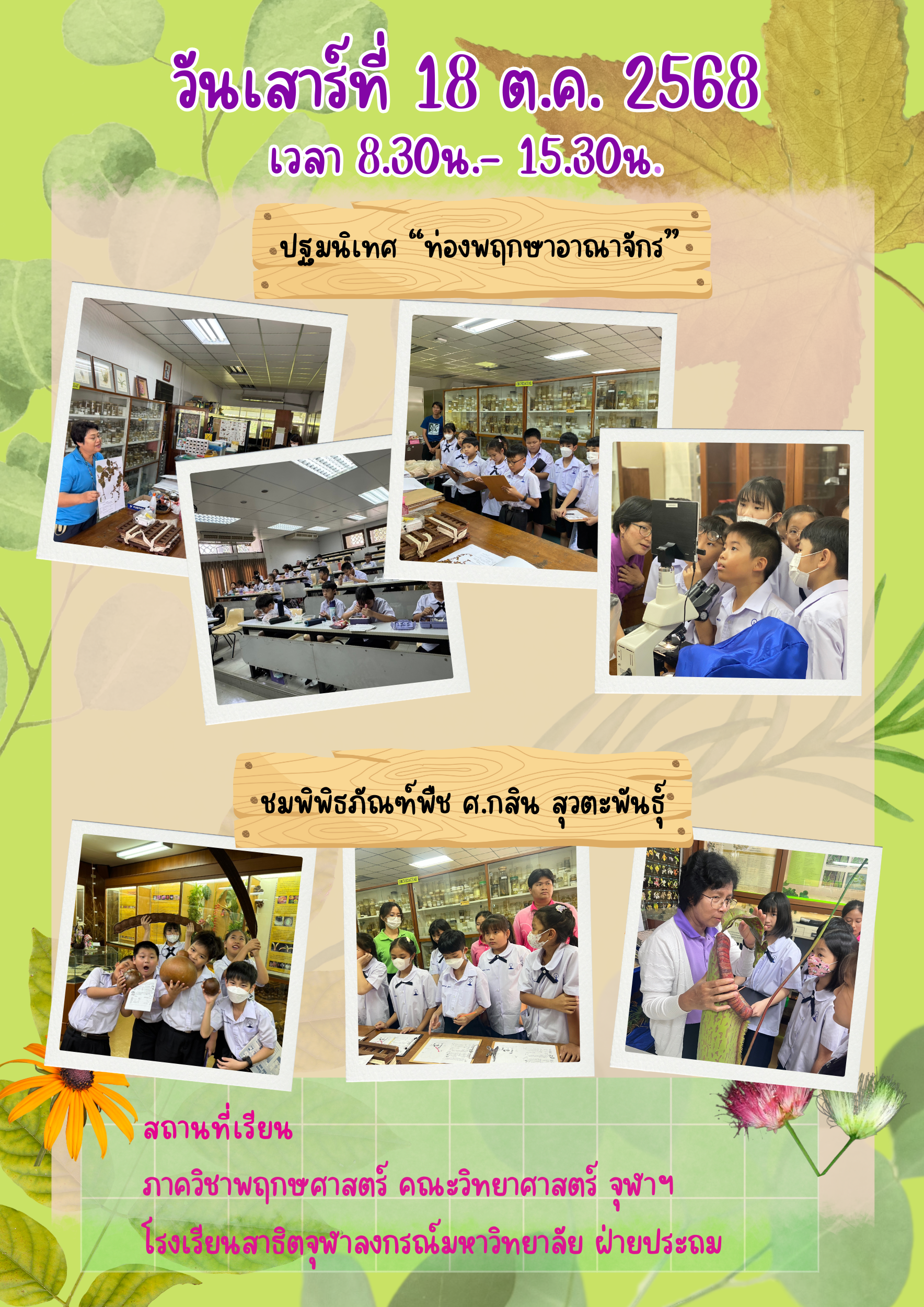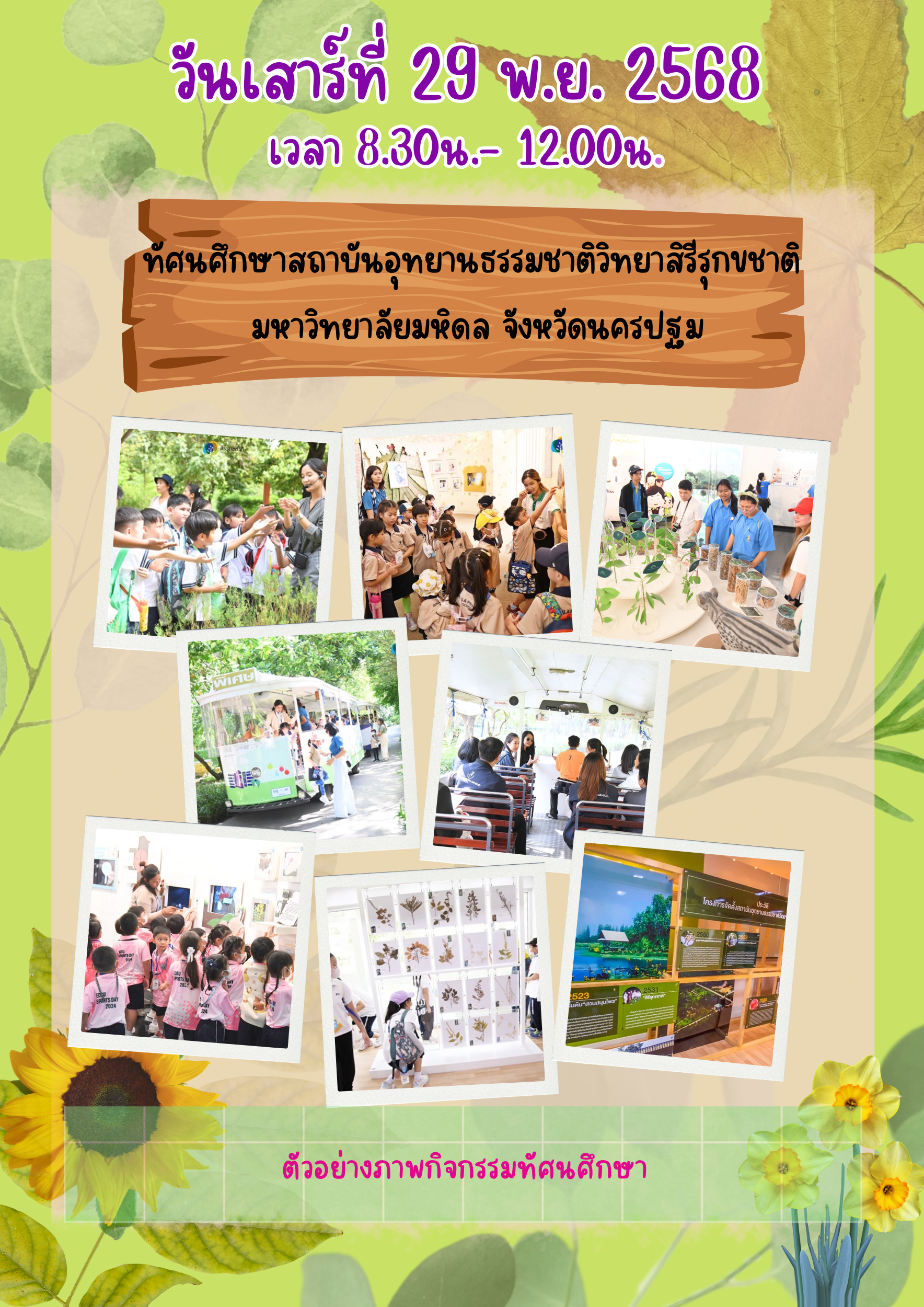 กิจกรรมทัศนศึกษา วันเสาร์ที่ 29 พฤศจิกายน 2568โดยมีวิทยากรจากภาควิชาพฤกษศาสตร์