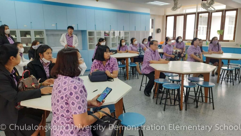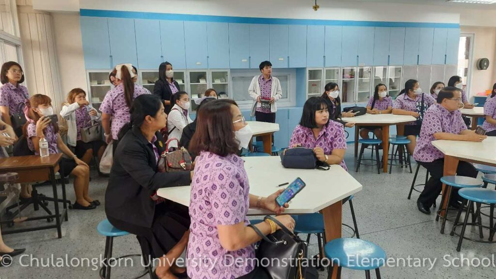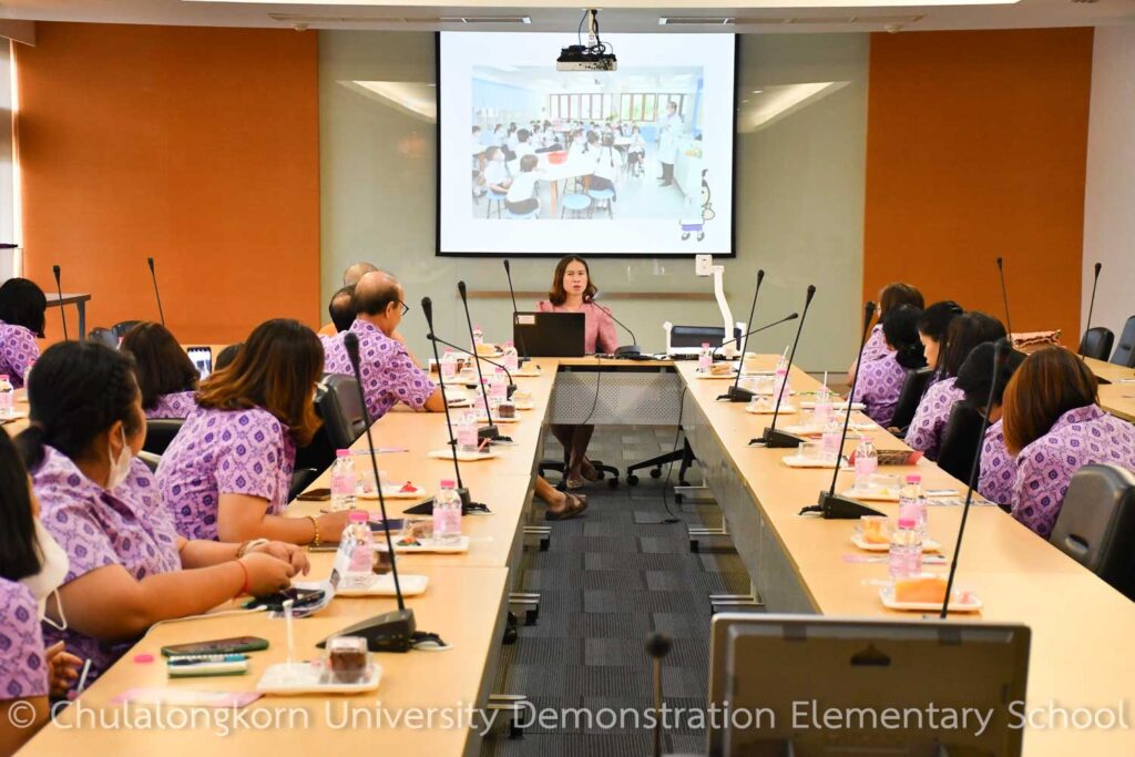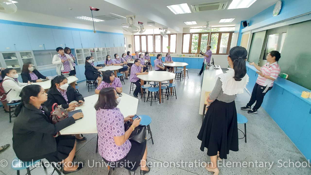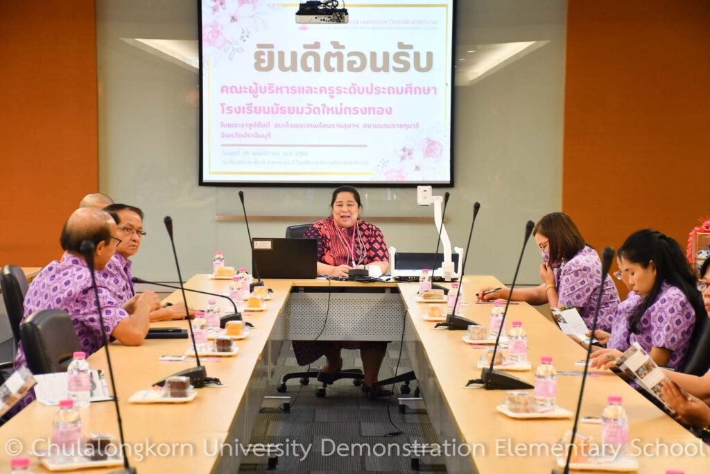 คณะผู้บริหารและครูระดับประถมศึกษา โรงเรียนมัธยมวัดใหม่กรงทอง ในพระราชูปถัมภ์สมเด็จพระเทพรัตนราชสุดาฯ สยามบรมราชกุมารี จังหวัดปราจีนบุรี เข้าเยี่ยมชมและศึกษาดูงานโรงเรียนสาธิตจุฬาลงกรณ์มหาวิทยาลัย ฝ่ายประถม (29/11/66)