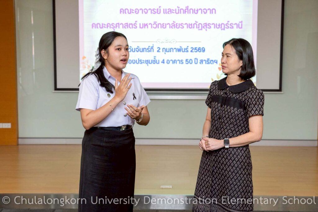 คณะอาจารย์และนักศึกษาจากคณะครุศาสตร์ มหาวิทยาลัยราชภัฏสุราษฎร์ธานี เข้าศึกษาดูงานโรงเรียนสาธิตจุฬาฯ ฝ่ายประถม (02/02/69) By Web Master|2026-02-04T09:17:39+07:00February 2, 2026|ข่าวสารบุคคลภายนอก| View Larger Image