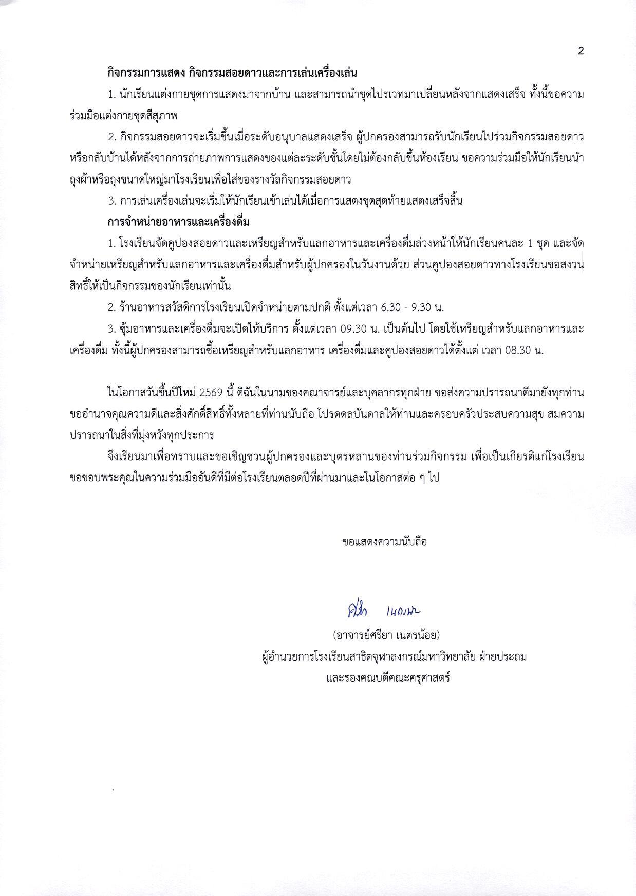 จึงเรียนมาเพื่อทราบและขอเชิญชวนผู้ปกครองและบุตรหลานของท่านร่วมกิจกรรม เพื่อเป็นเกียรติแก่โรงเรียนขอขอบพระคุณในความร่วมมืออันดีที่มีต่อโรงเรียนตลอดปีที่ผ่านมาและในโอกาสต่อ ๆ ไป